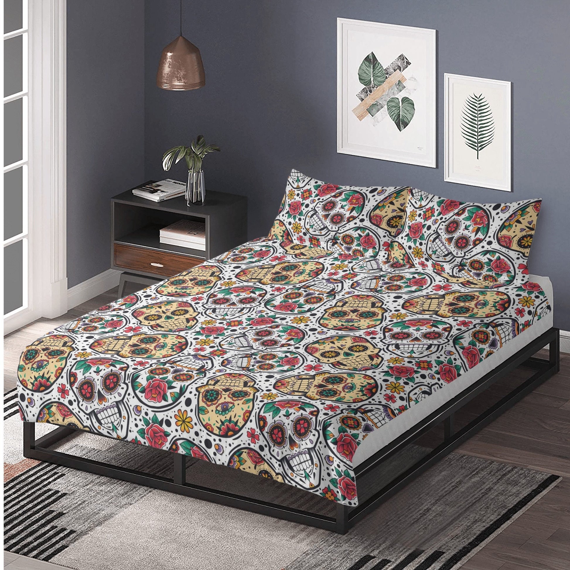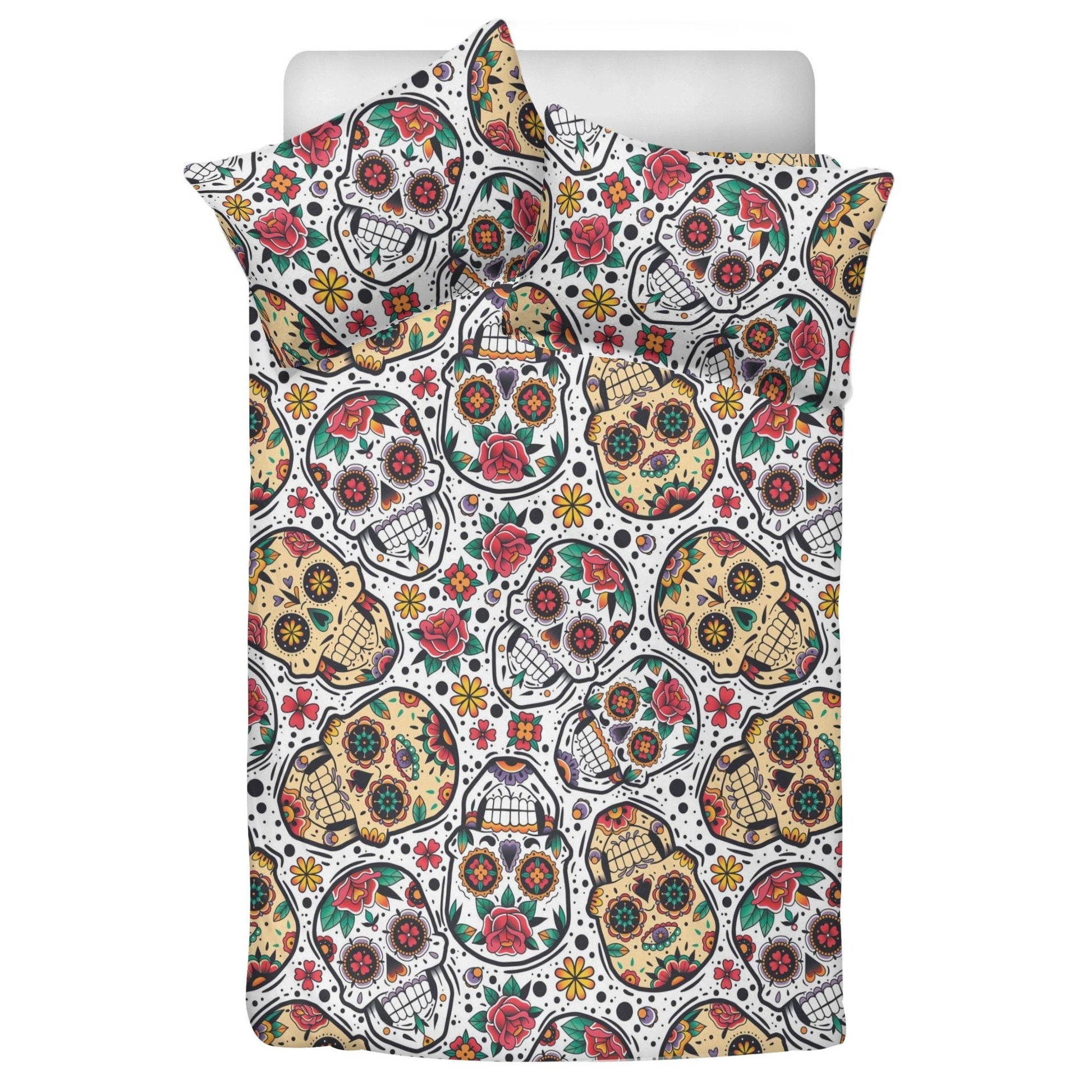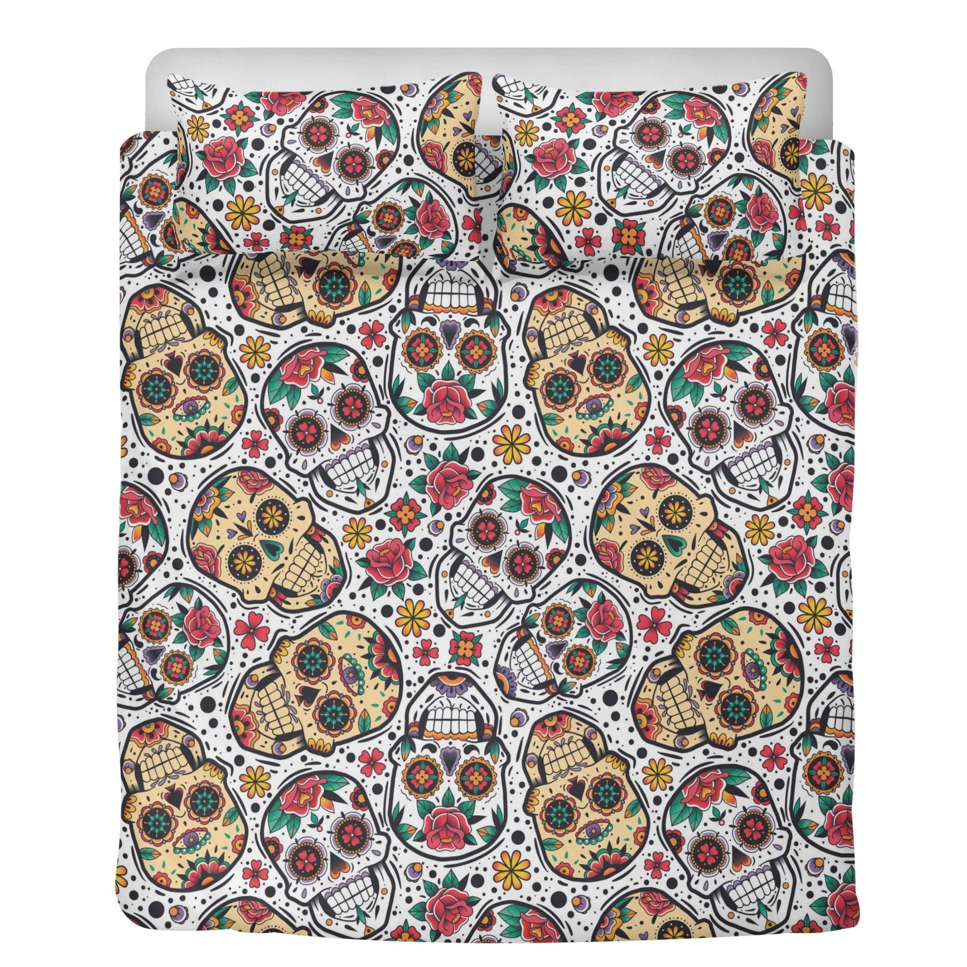 4pcs Candy skull pattern bedding duvet cover, day of the dead skull bedding set, dia de los muertos sugar skull duvet cover pillow covers