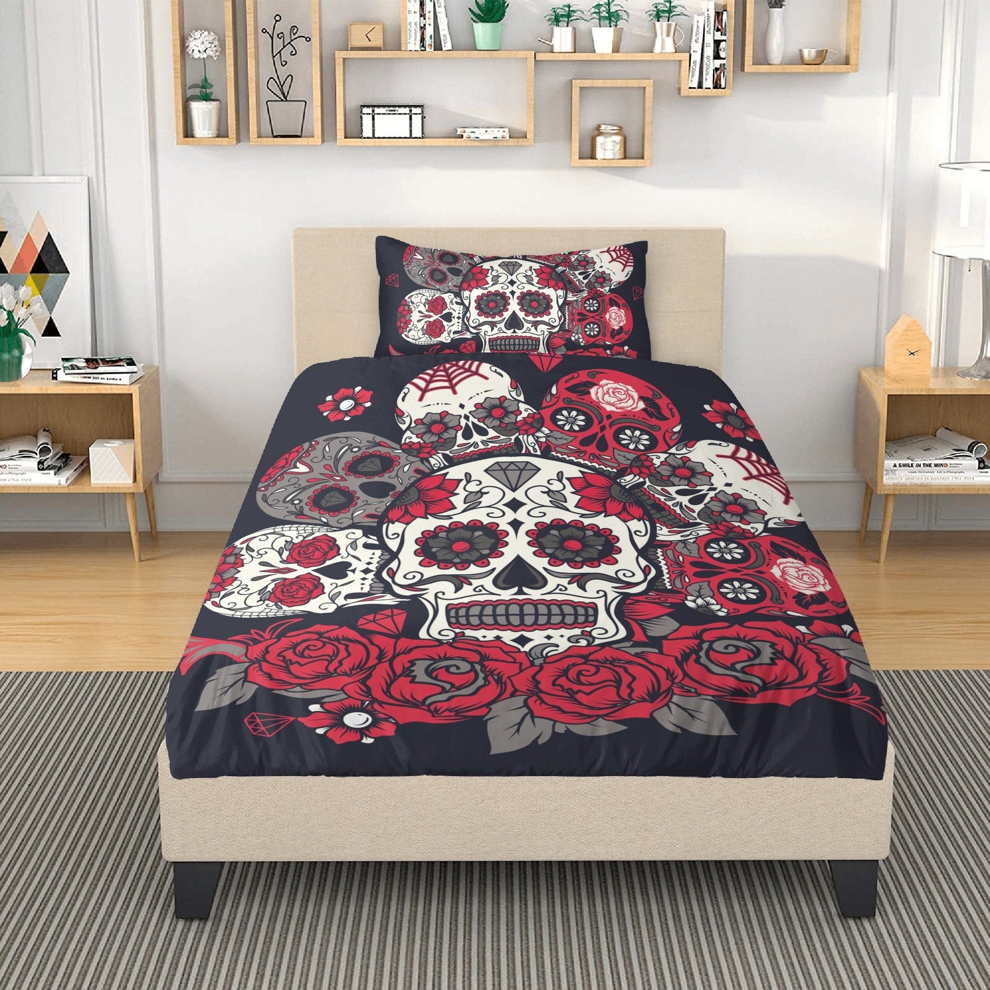 4pcs Floral sugar skull bedding duvet cover set, day of the dead skull candy skull bedding set, sugar skull duvet cover set pillow covers