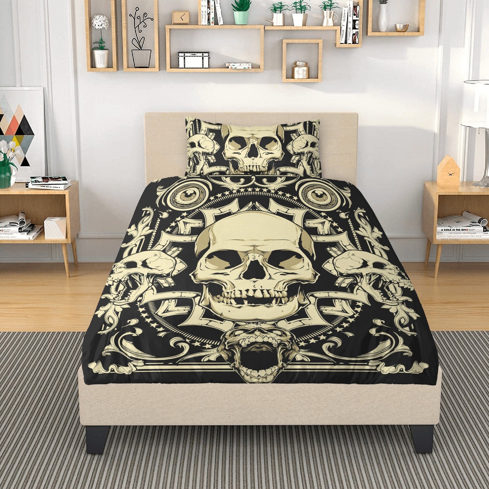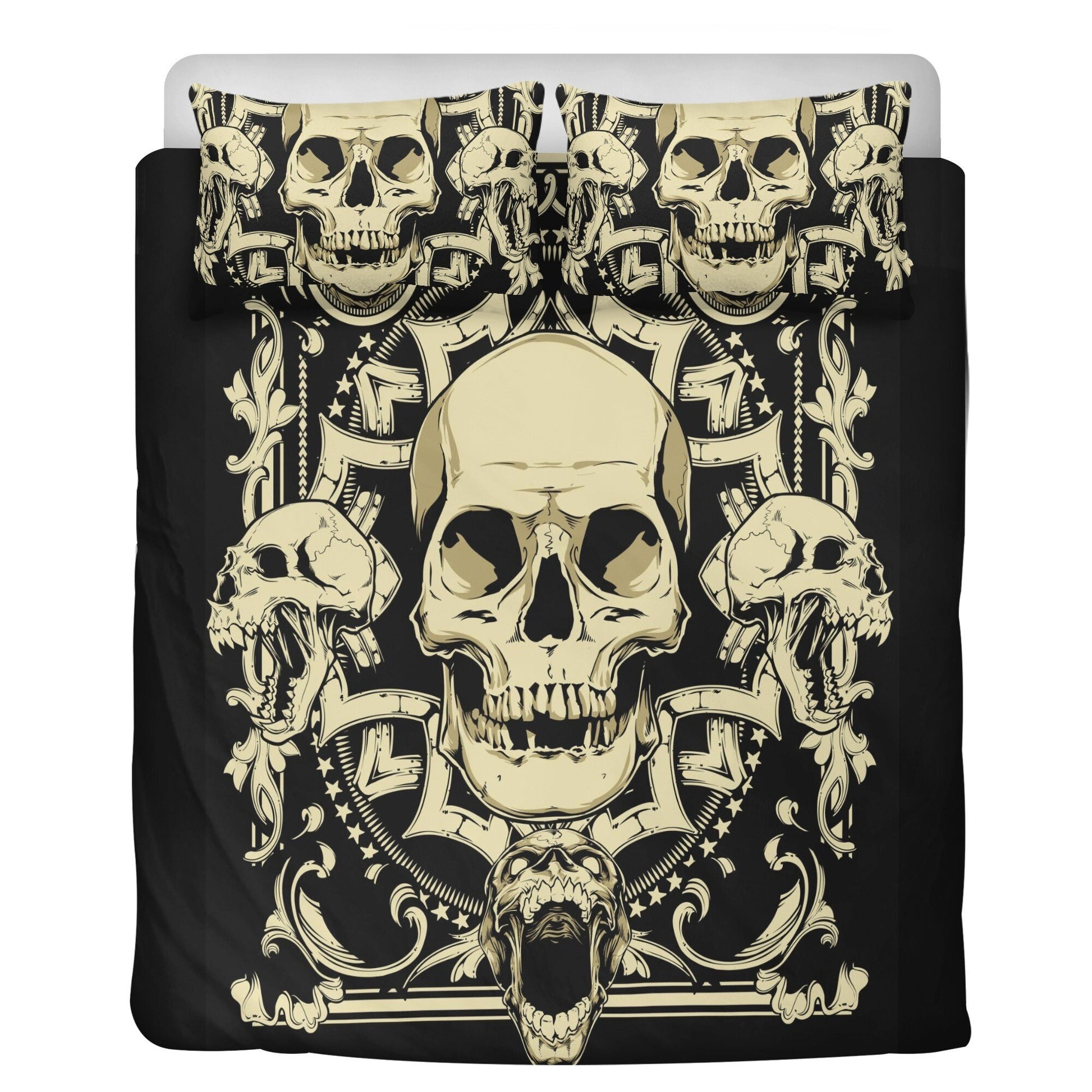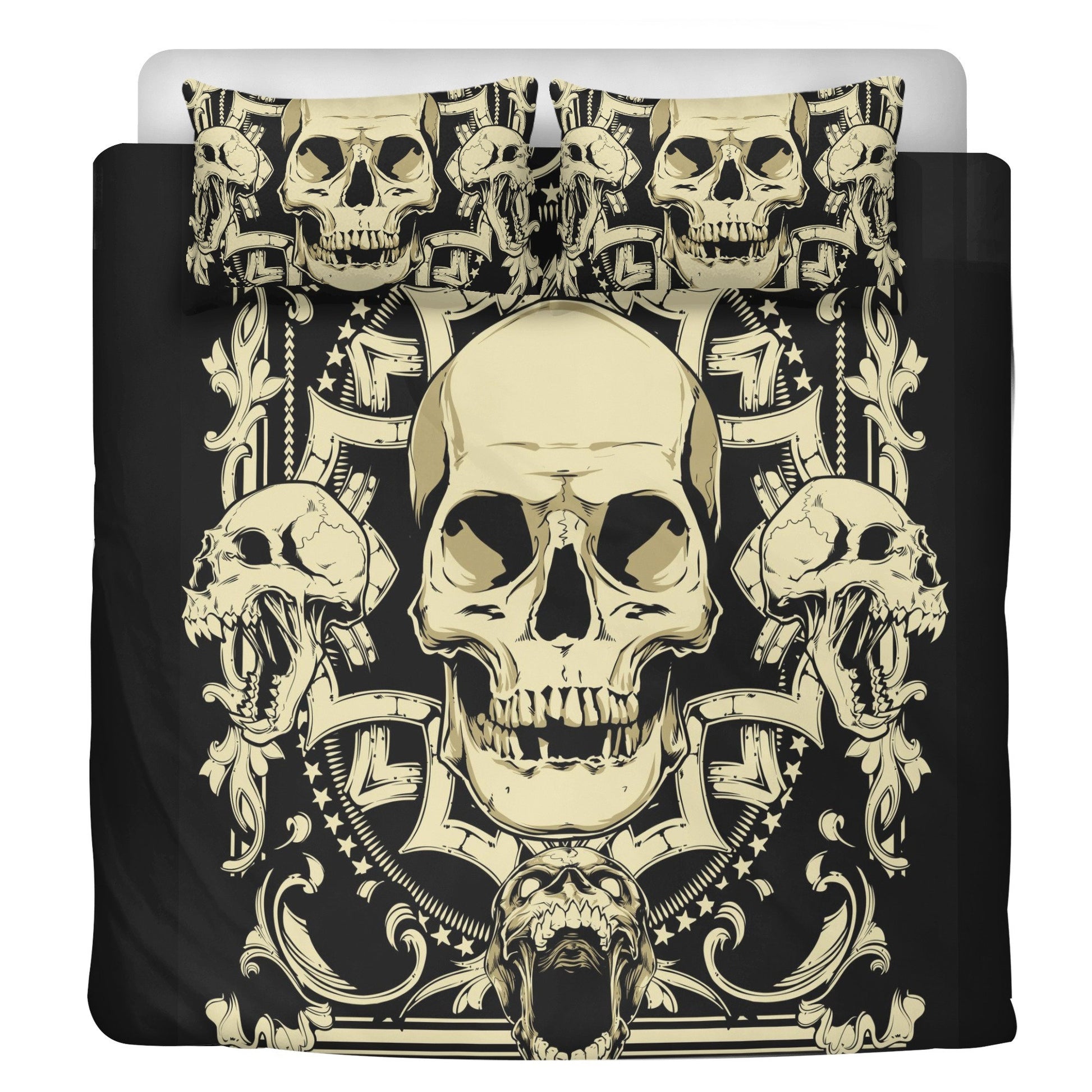4pcs Horror skull bedding set, Gothic skeleton duvet cover set, Halloween skull bedding set, Grim reaper skull duvet cover pillow covers