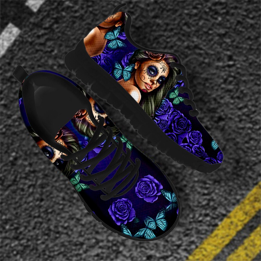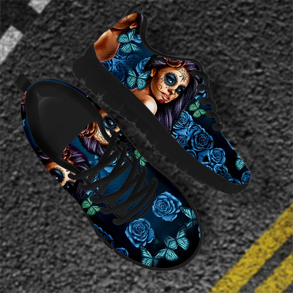 Breathable Shoes Women Flat Sneakers Day of the Dead Print Casual Lace-up