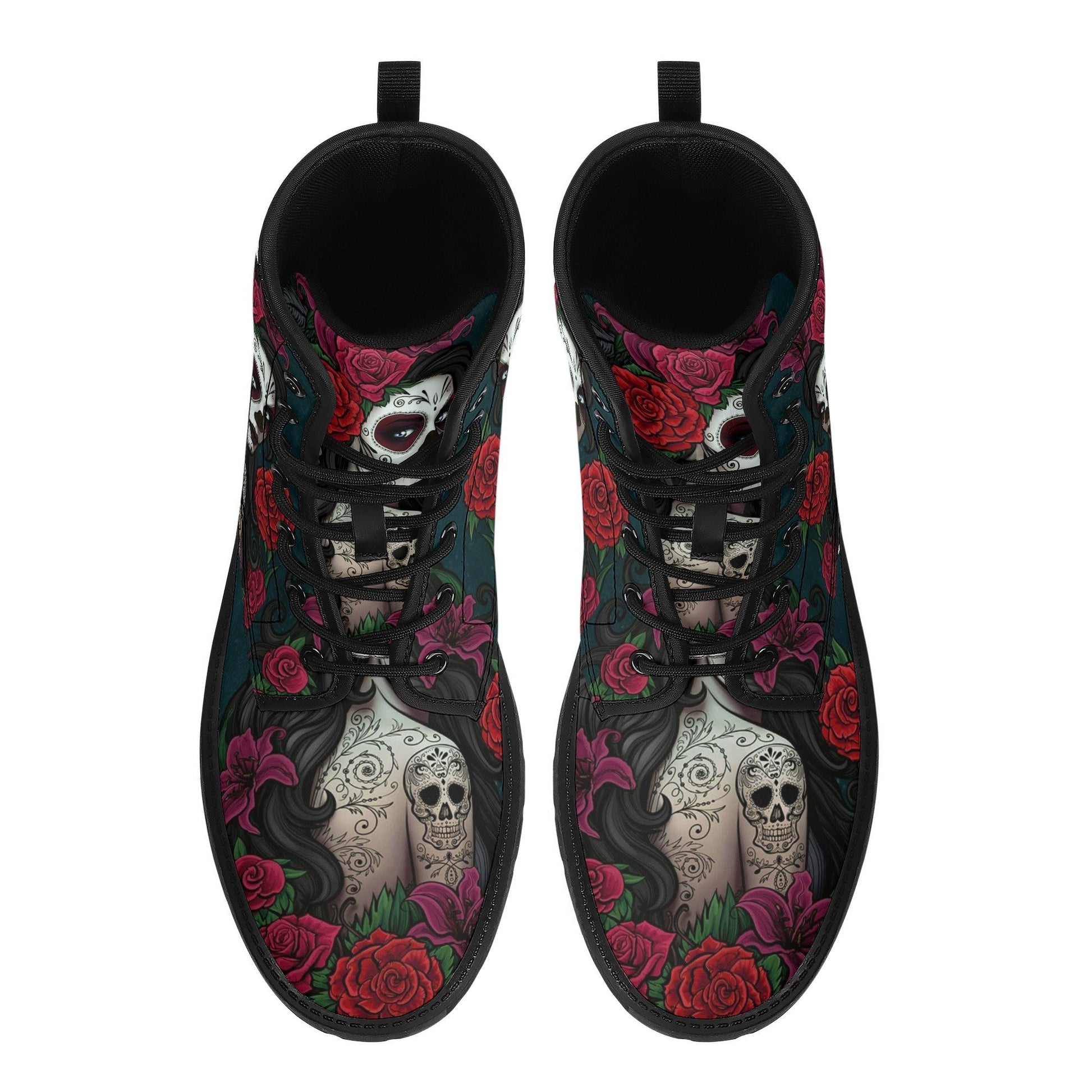 Calaveras mexican skull girl leather boots, sugar skull boots for men women, Dia de los muertos skull boots for women men, skull girl boots