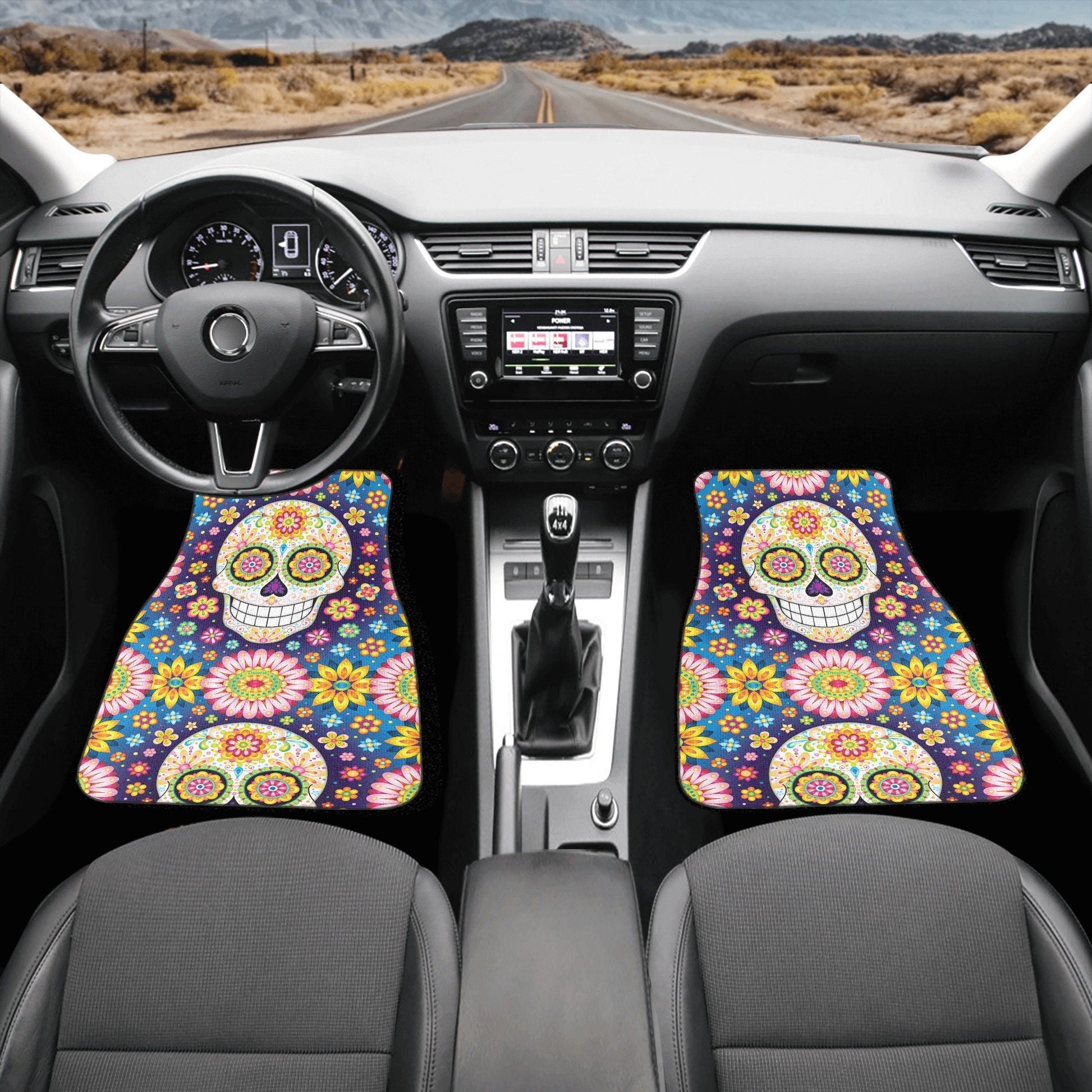 Candy skull seat cover for car, Day of the dead skull Seat Covers mat for car, sugar skull seat cover rug mat for car, skull car seat cover