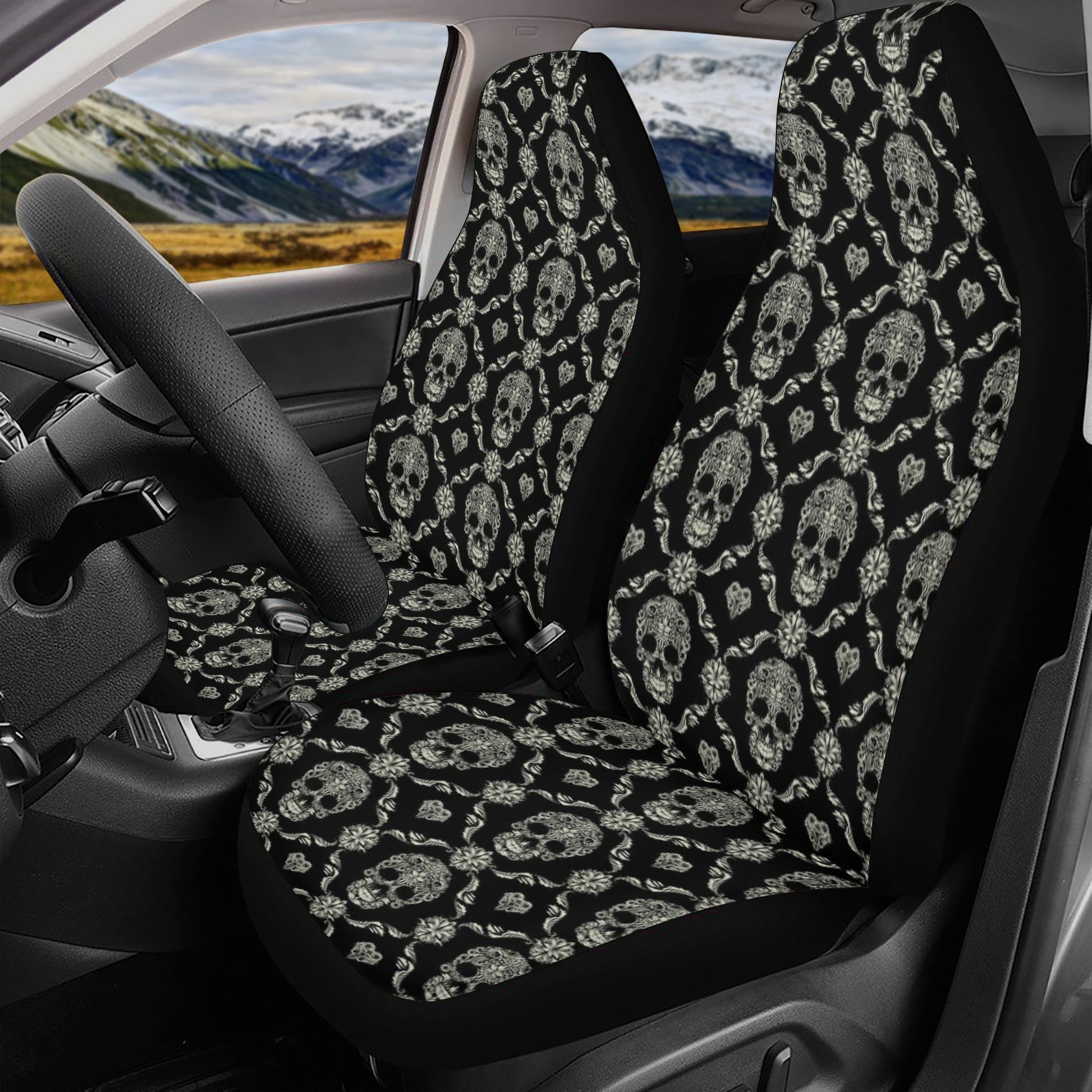 Christmas skull seat cover protector, skull in fire car seat protector cover, flower skull car accessories, evil car seat protector, flame skull car protector, goth car mat, motorcycle skull car accessories, flame skull seat cover for truck Constructed with high quality polyester micro-fiber fabric for maximum durability and comfort. Add style to your seats while protecting them from spills, stains, tearing, fading and more. Designed for quick and easy installation on most car and SUV bucket style seats - no tools required. Elastic backing and fastening system ensures a snug and secure universal fit on most standard car and SUV seats. Not for use on seats with integrated airbags, seatbelts or armrests. Size: Front seat cover: 19 in x 20 in x 31 in x 18 in (please see photo for detail) Back seat cover: 23 in x 30 in x 47 in (please see photo for detail) ==== Car mats All of our Front And Back Car Mats are custom-made-to-order and handcrafted to the highest quality standards. Add style to your car while keeping your floors clean and protected! Features a durable and easy-to-clean custom print constructed from a waterproof polyester material. Rubberized backing with black finished edges ensures a secure grip and skid-free placement. Keep your car floors protected from dirt, spills and daily wear and tear with these stylish custom printed car floor mats! Size: Front mat: 26in x 17in Back mat: 13in x 17 (see detail in product images) ======== All products in our store are only manufactured upon receiving an order from the customer. Please carefully review the product description and dimensions in the illustrative images before placing an order. The following cases are not eligible for return/exchange: 1. The product you receive matches the description. 2. The product dimensions (with illustrative images describing the dimensions) you receive match the description. 3. The product has been customized as per your request (e.g., printed with your name/image).