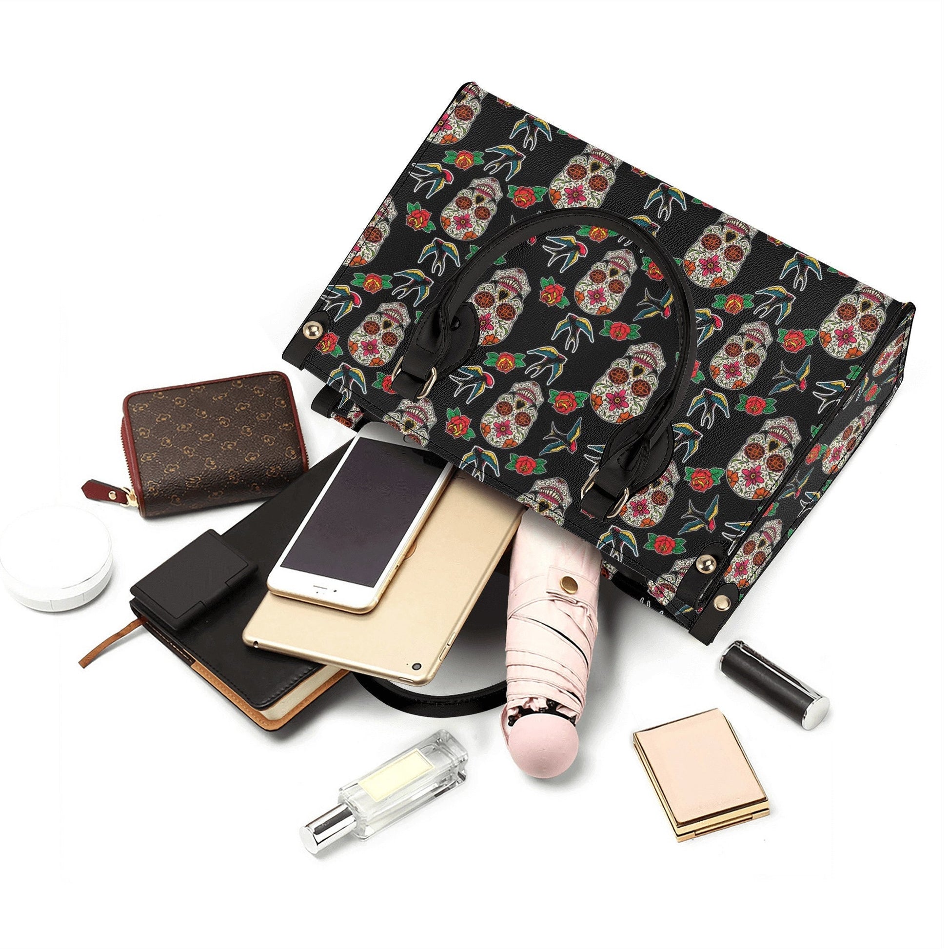 Floral sugar skull handbag with strap, sugar skull handbag, sugar skull girl bag with shoulder strap, day of the dead women's handbag, sugar skull bag with shoulder strap, calaveras skull tote bag, sugar skull crossbody bag, day of the dead handmade bag, cinco de mayo skull tote bag, mexican skull p Size: LENGTH x WIDTH x HEIGHT 29cm x 11cm x 20cm 11.4in x 4.3in x 7.9in * The main material of this handbag is PU leather * Smooth zipper and all over printing customized style * Main compartment design with two top handles maintains balance * One inside pocket with sewn-in and non-removable shoulder strap * White & Black color for different style with wearing outfits * This handbag is a great gift for girls and moms. Suitable for commuting and traveling. * You can put your phone, keys, and small items you need everyday. CARE INSTRUCTIONS: Regular wiping is recommended with cold water and a wet cloth. And just dry it to get rid of the smell. (It's normal to smell something when you receive it. Leave it in the air for 2-3 days to remove) ======== All products in our store are only manufactured upon receiving an order from the customer. Please carefully review the product description and dimensions in the illustrative images before placing an order. The following cases are not eligible for return/exchange: 1. The product you receive matches the description. 2. The product dimensions (with illustrative images describing the dimensions) you receive match the description. 3. The product has been customized as per your request (e.g., printed with your name/image).