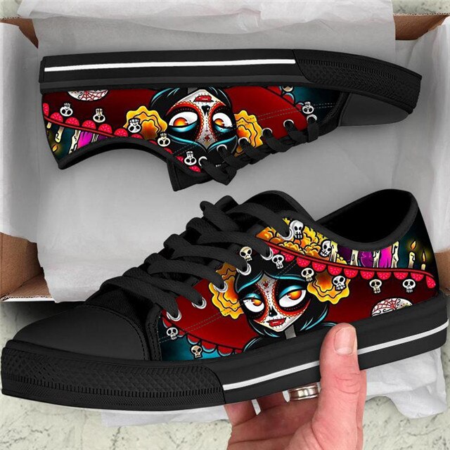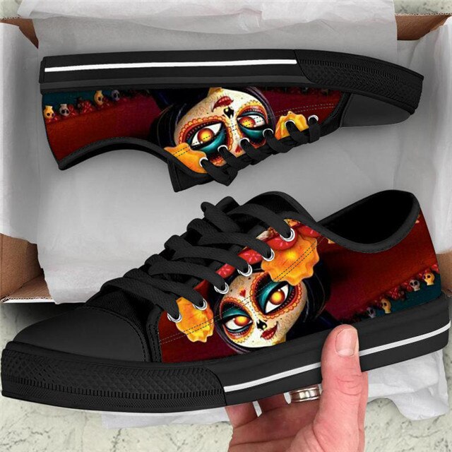 Cool Sugar Skull Pattern Women Casual Flats Shoes Lady Comfortable Canvas Shoes