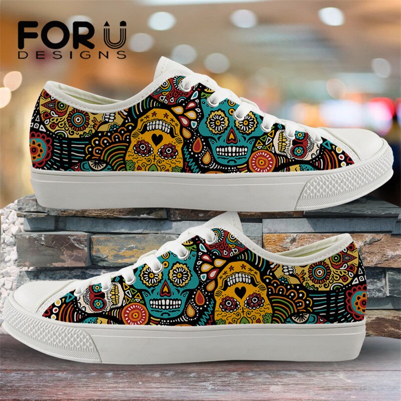 Cute Suger Skull Pattern Women Low Style Canvas Shoes