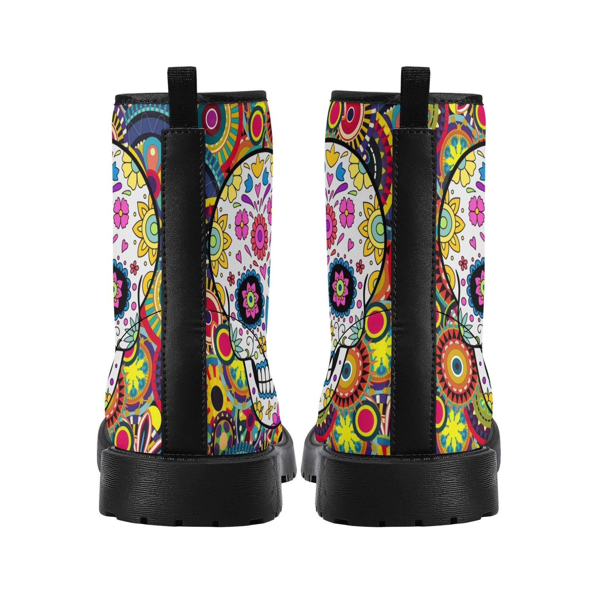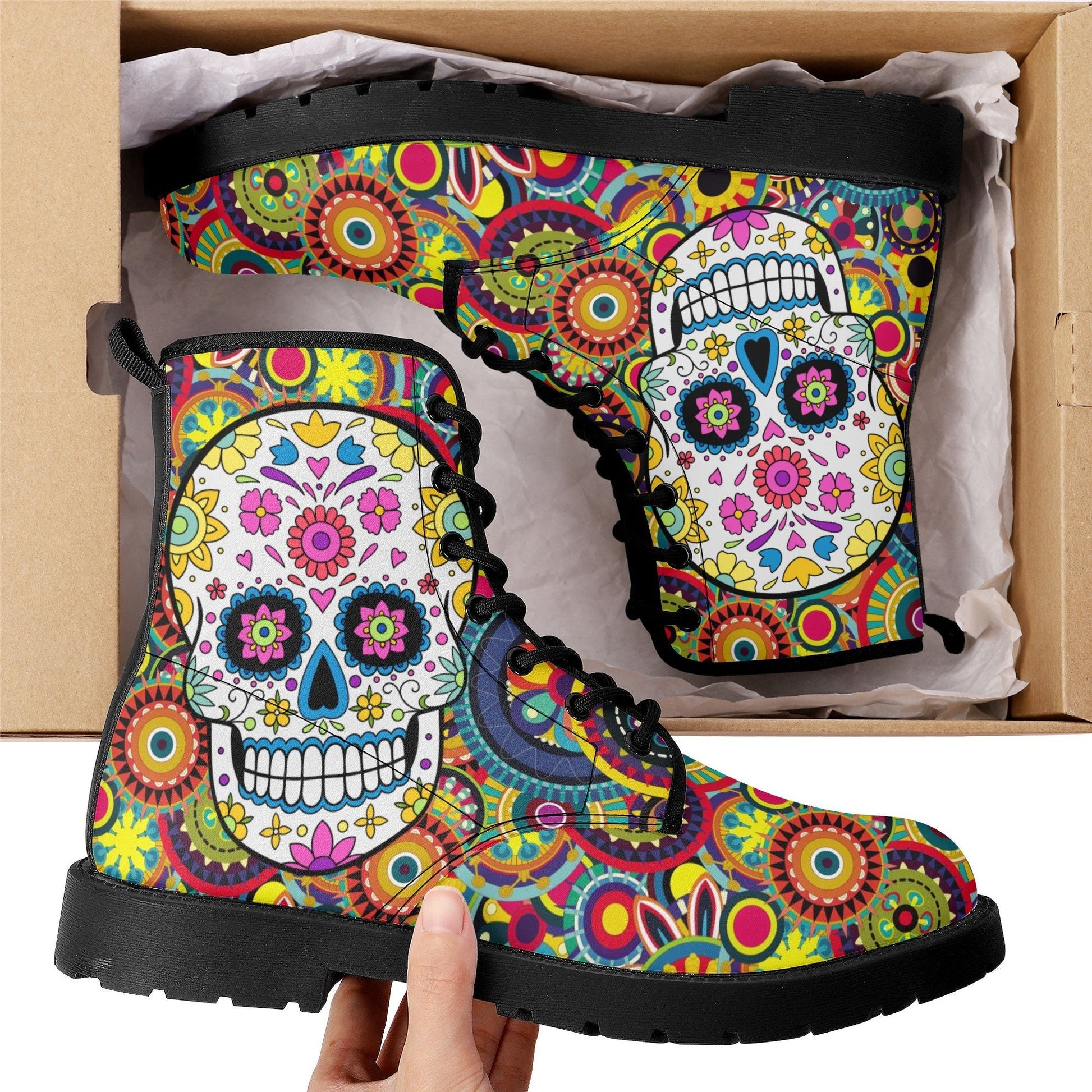 Day of the dead leather boots, sugar skull boots for men women sugar skull women's boots, candy skull women's boots, Calaveras leather boots, women men skull boots, dia de los muertos Mexican skull boots