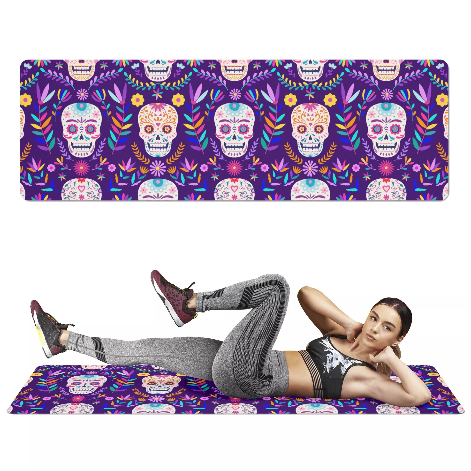 Sugar skull day of the dead Yoga mat, Gothic skull Dia de los muertos yoga mat, skeleton Halloween yoga mat, sugar skull fitness mat, skull workout mat