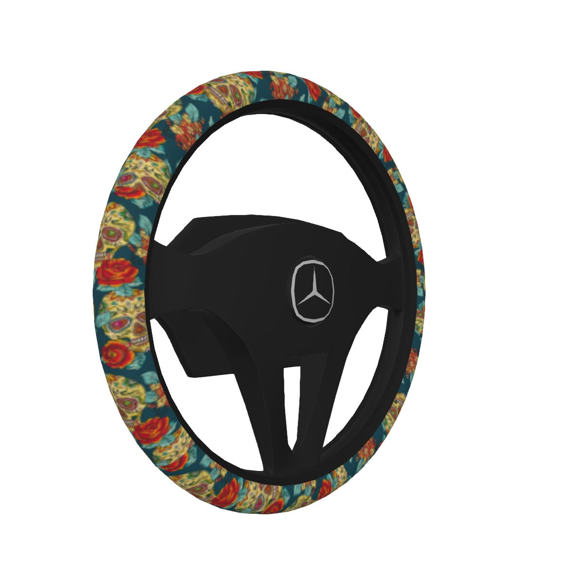 Day of the dead skull Steering Wheel Cover, Sugar skull floral steering wheel cover