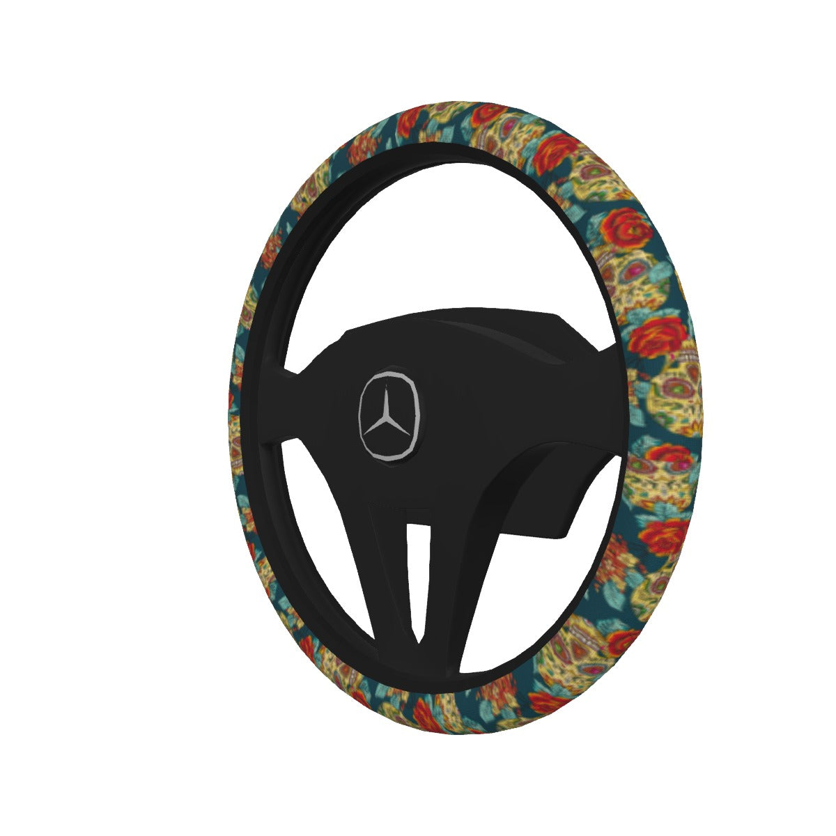 Day of the dead skull Steering Wheel Cover, Sugar skull floral steering wheel cover, skull car accessories, dia de los muertos steering wheel cover