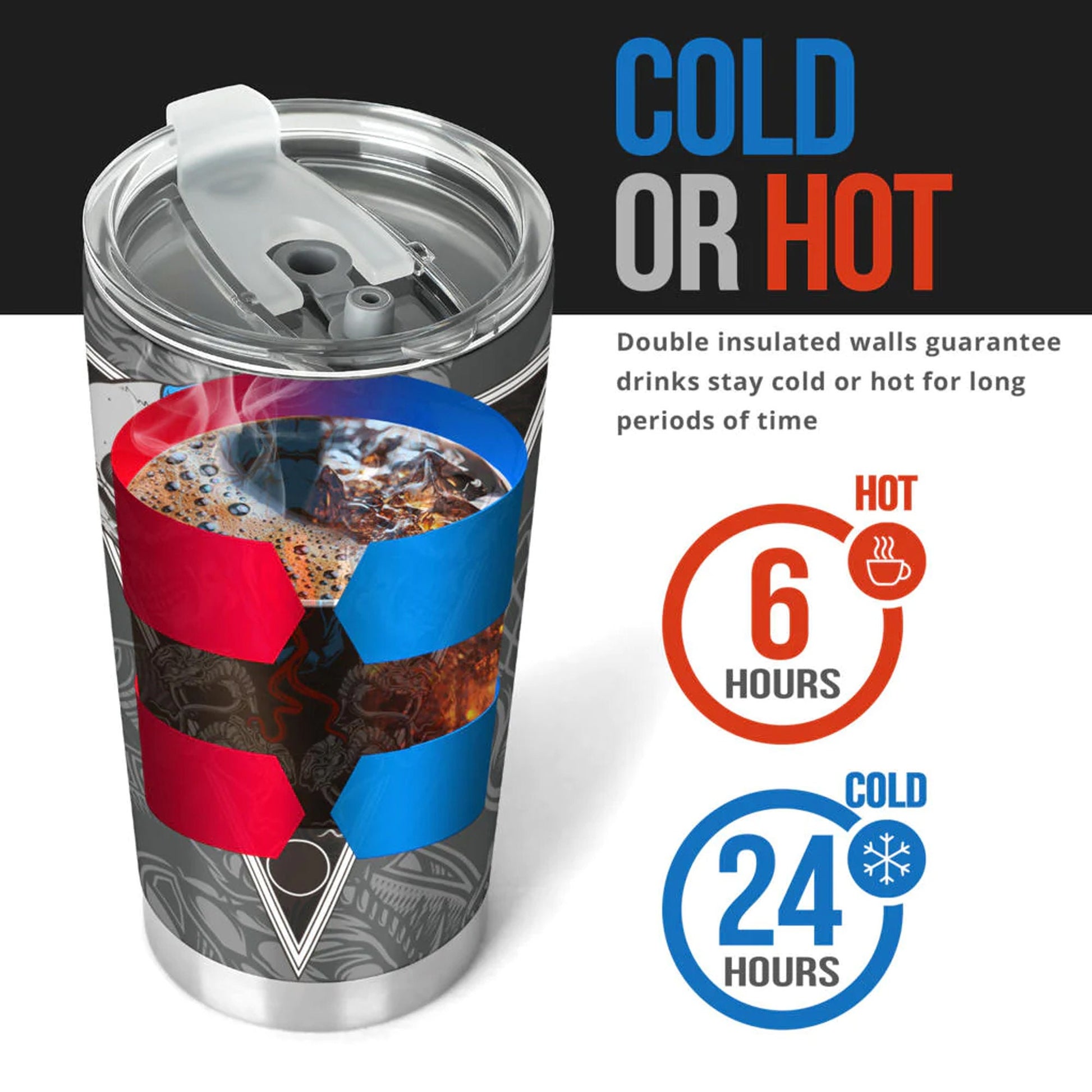 Constructed with medical-grade stainless steel and double-walled vacuum insulation to keep your beverages hot or cold all day.