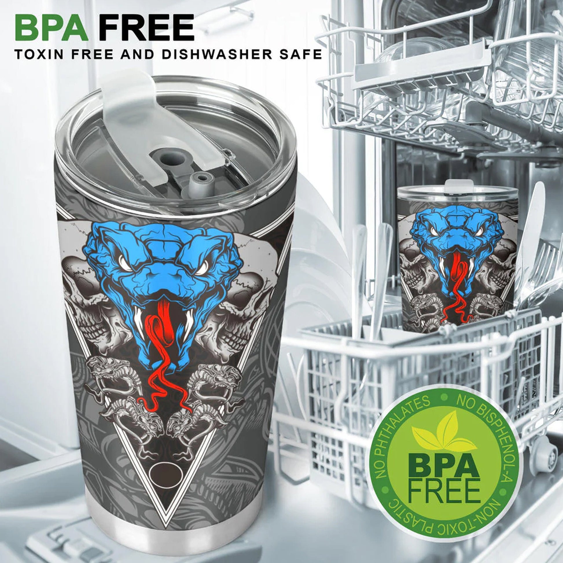 BPA-free materials make this tumbler dishwasher safe for easy cleaning at home.