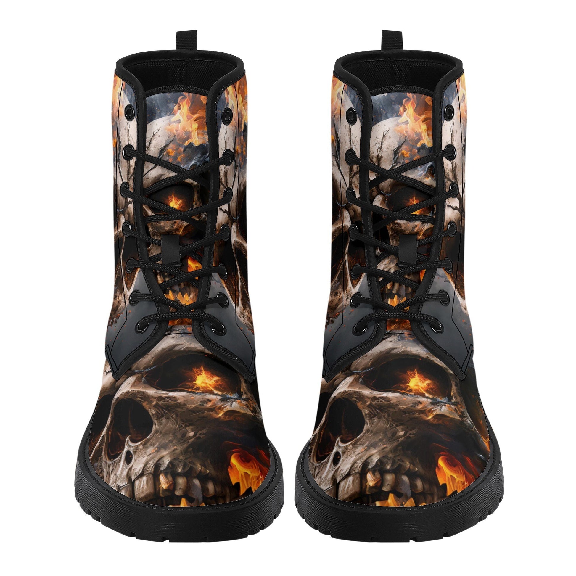 Death with scythes combat boots, gothic skull unisex boots, death with scythes shoes, horror men women boots, skull waterproof Lace Up Anti-
