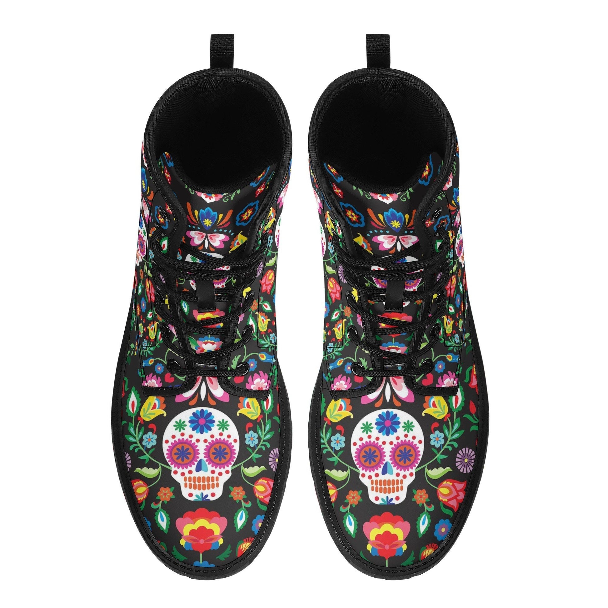 Dia de los muertos skull boots shoes, Mexican skull day of the dead leather boots Sugar Calaveras skull boots men women, Candy skull boots