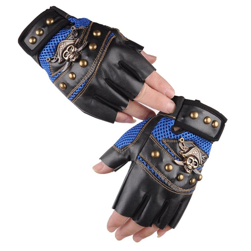 Fashion Men Ridding Gloves Pirates of the Caribbean Captain Skull Accessories Half-finger Glove Rivet Breathable Sport Glove