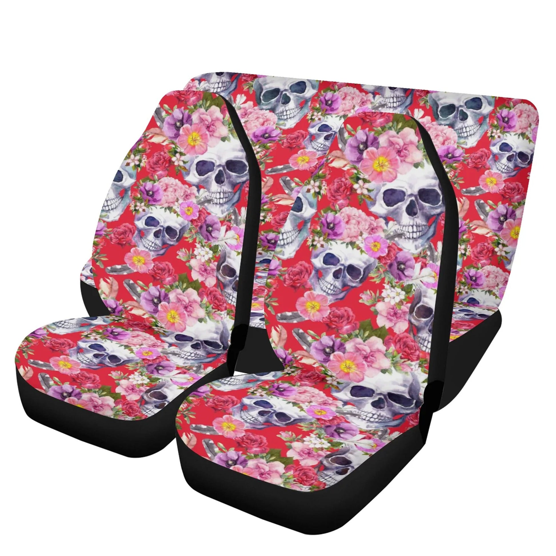 Floral skull Car Seat Covers car mats, Halloween gothic rose skull car seat cover mats, skeleton grim reaper car accessories covers mats