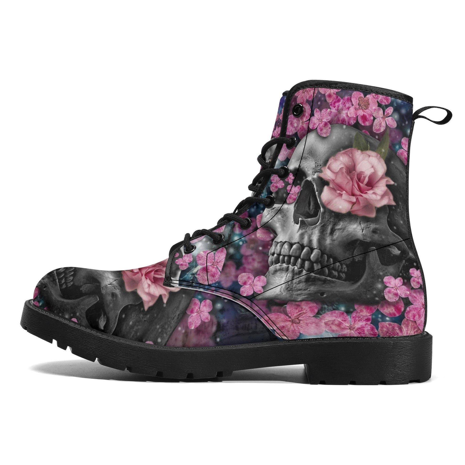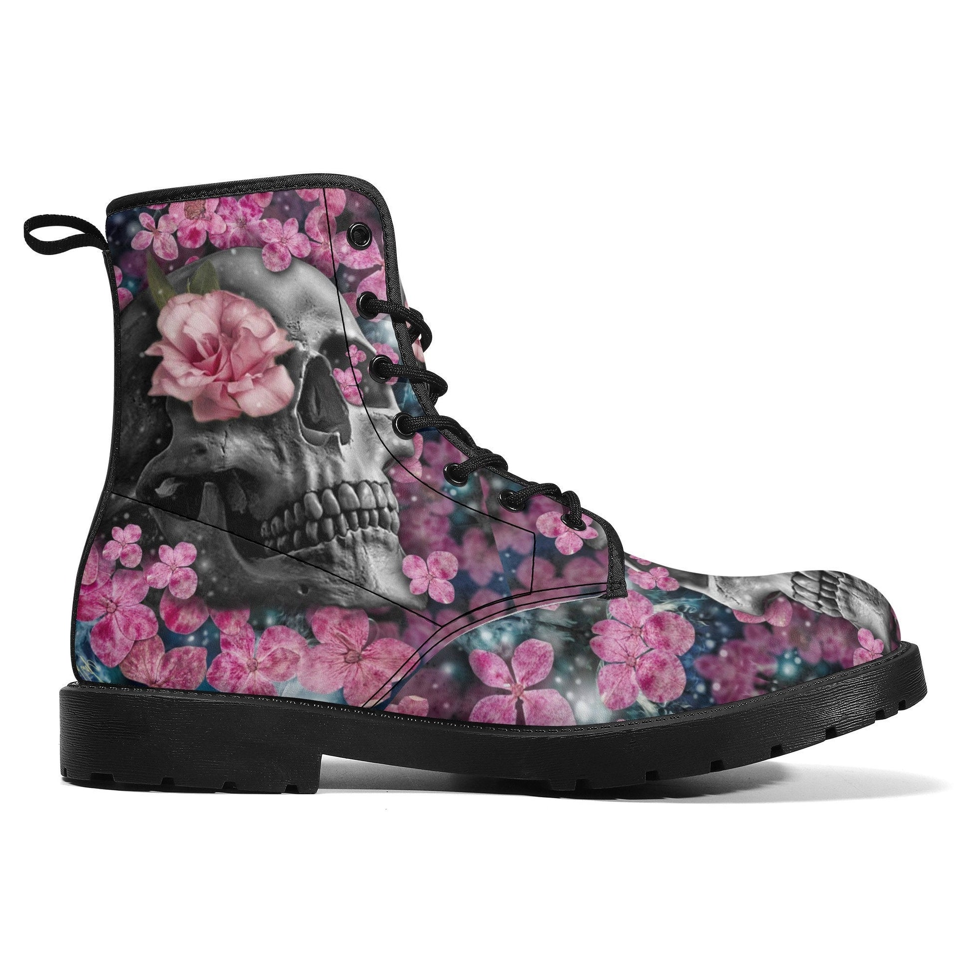 Floral skull grim reaper boots for men women, Halloween skull gothic women boots skeleton boots Flower grim reaper leather skull boots shoes