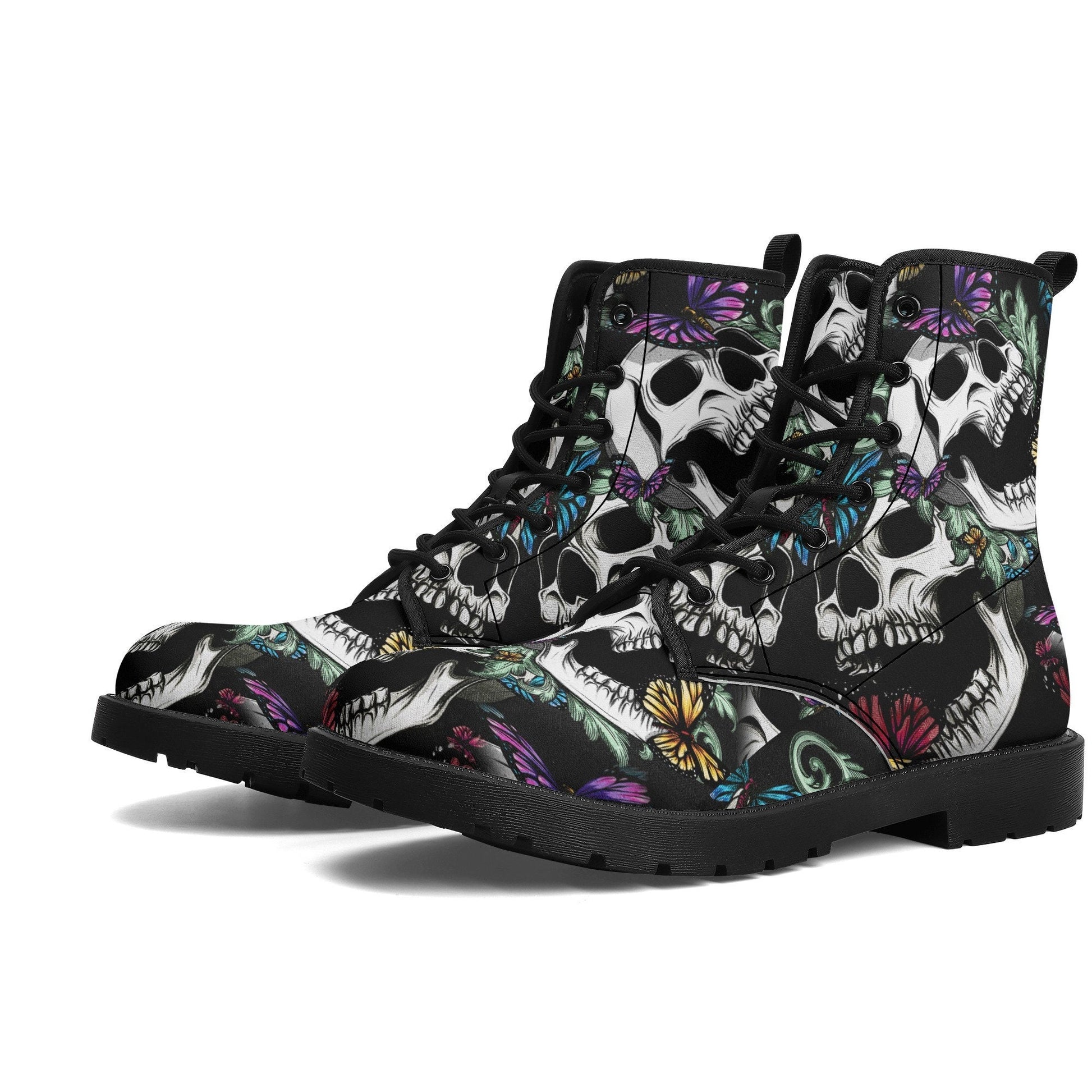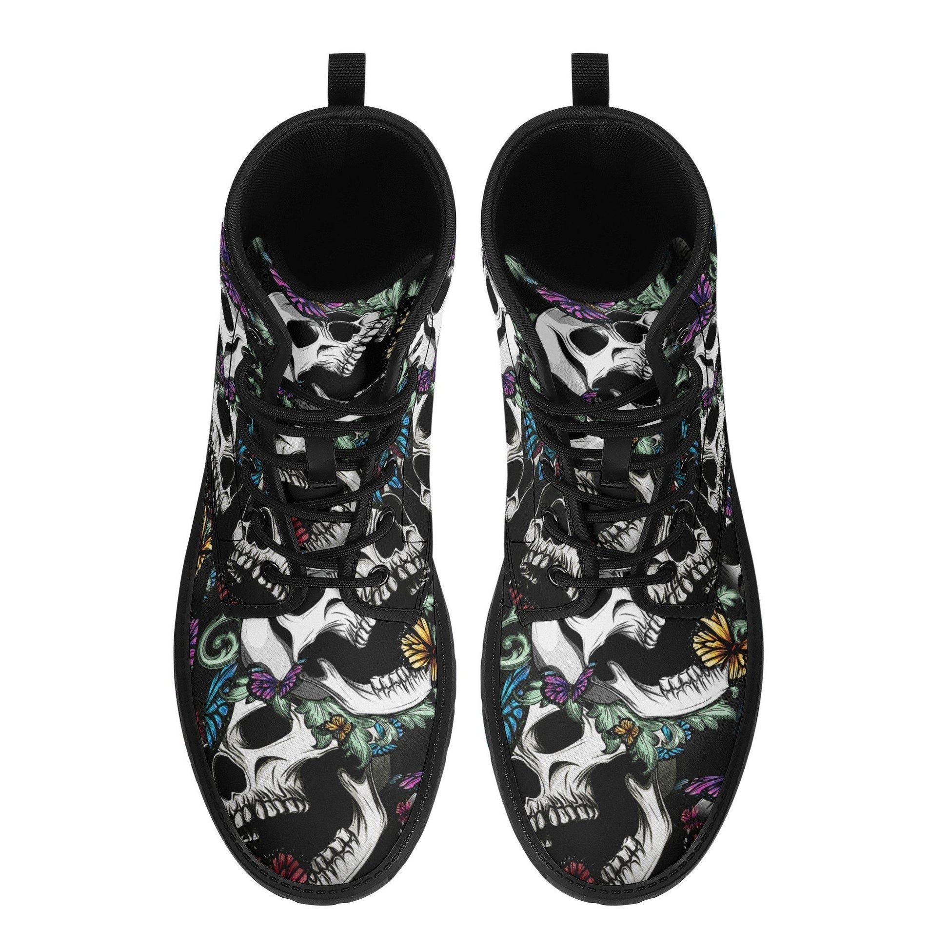 Floral skull horror boots for men women shoes, Gothic skeleton boots for men Gothic Platform Skull Boots, rose skull Halloween leather boots, Grim reaper skull horror boots for men women shoes, Gothic skeleton boots for men, Nightmare before Christmas Spooky Halloween leather boots