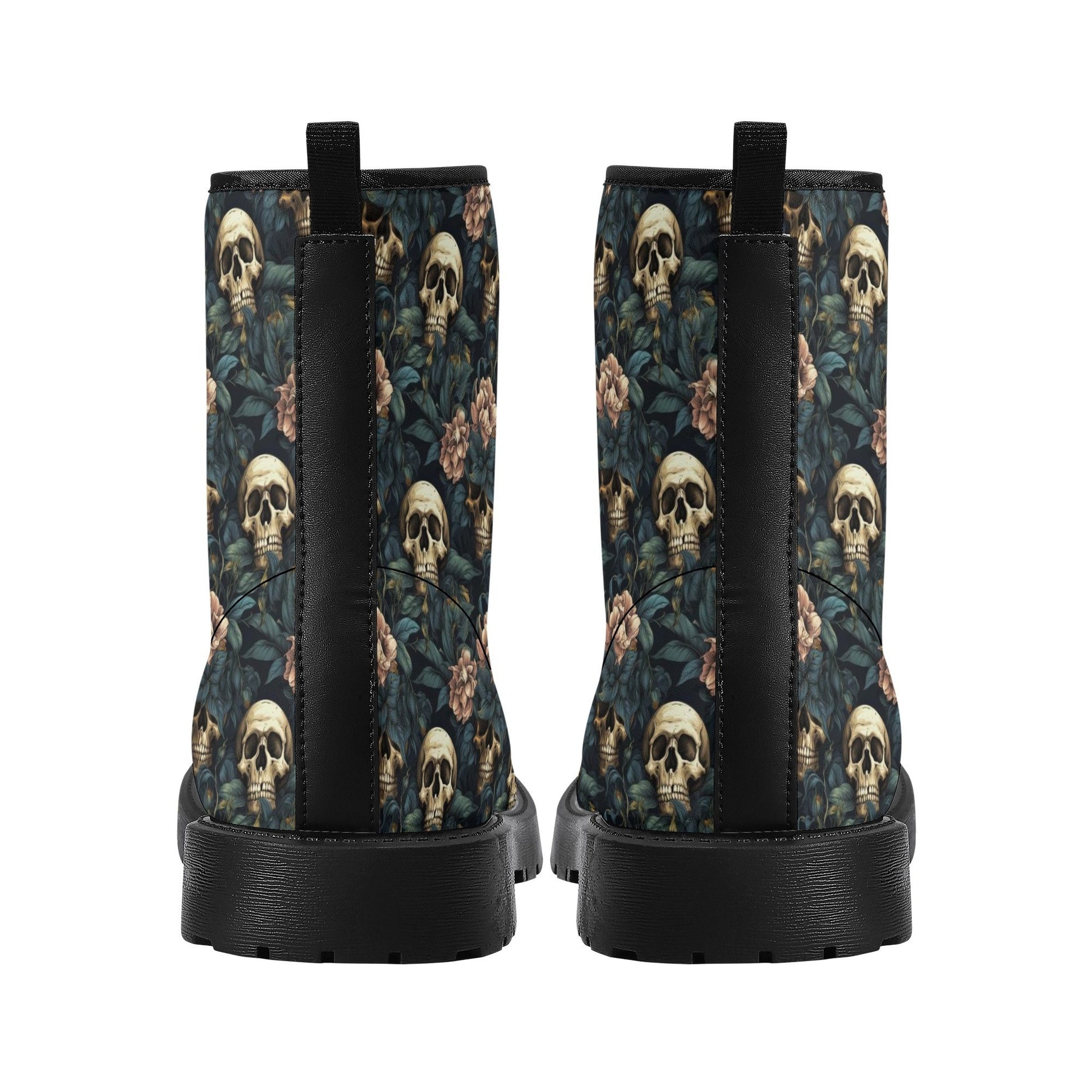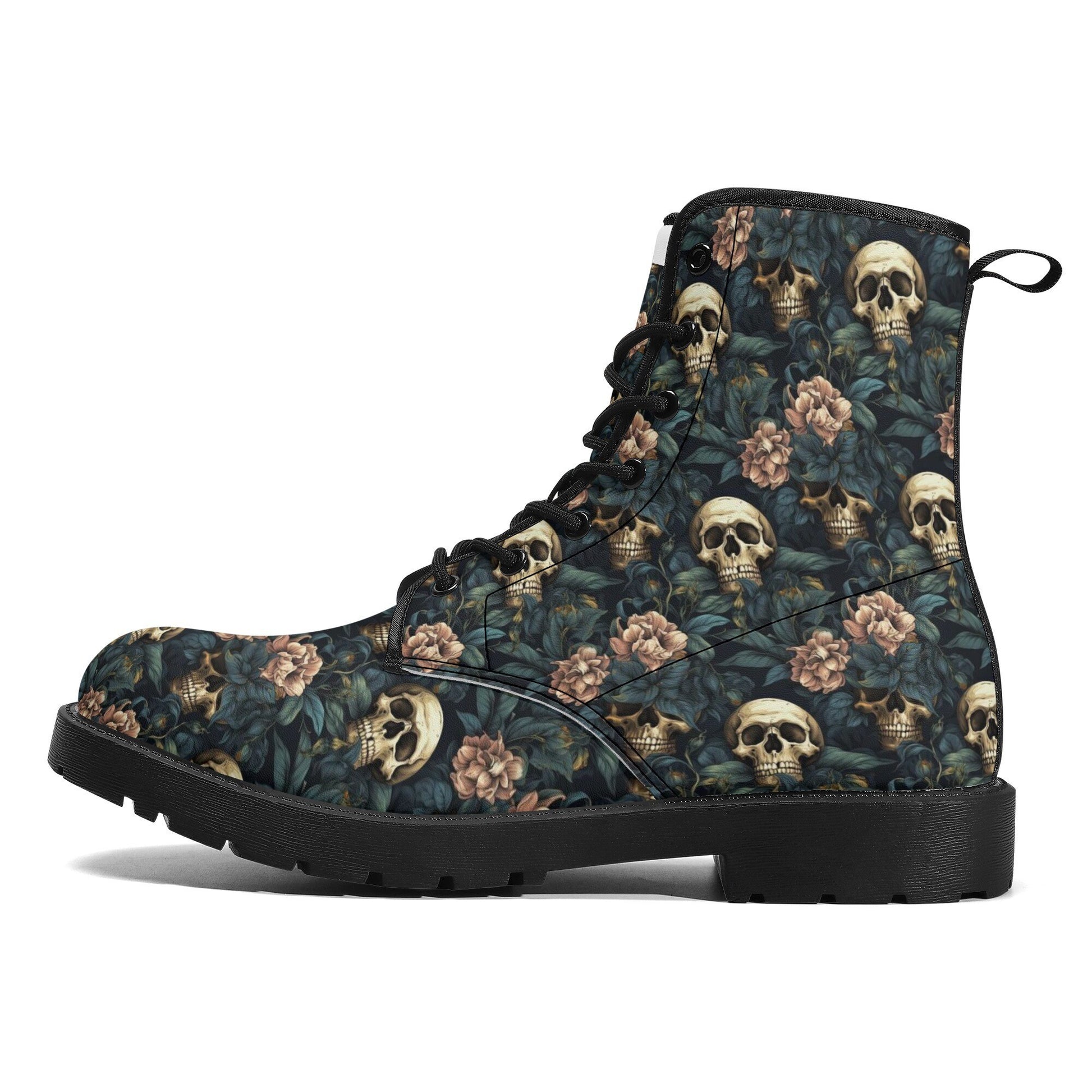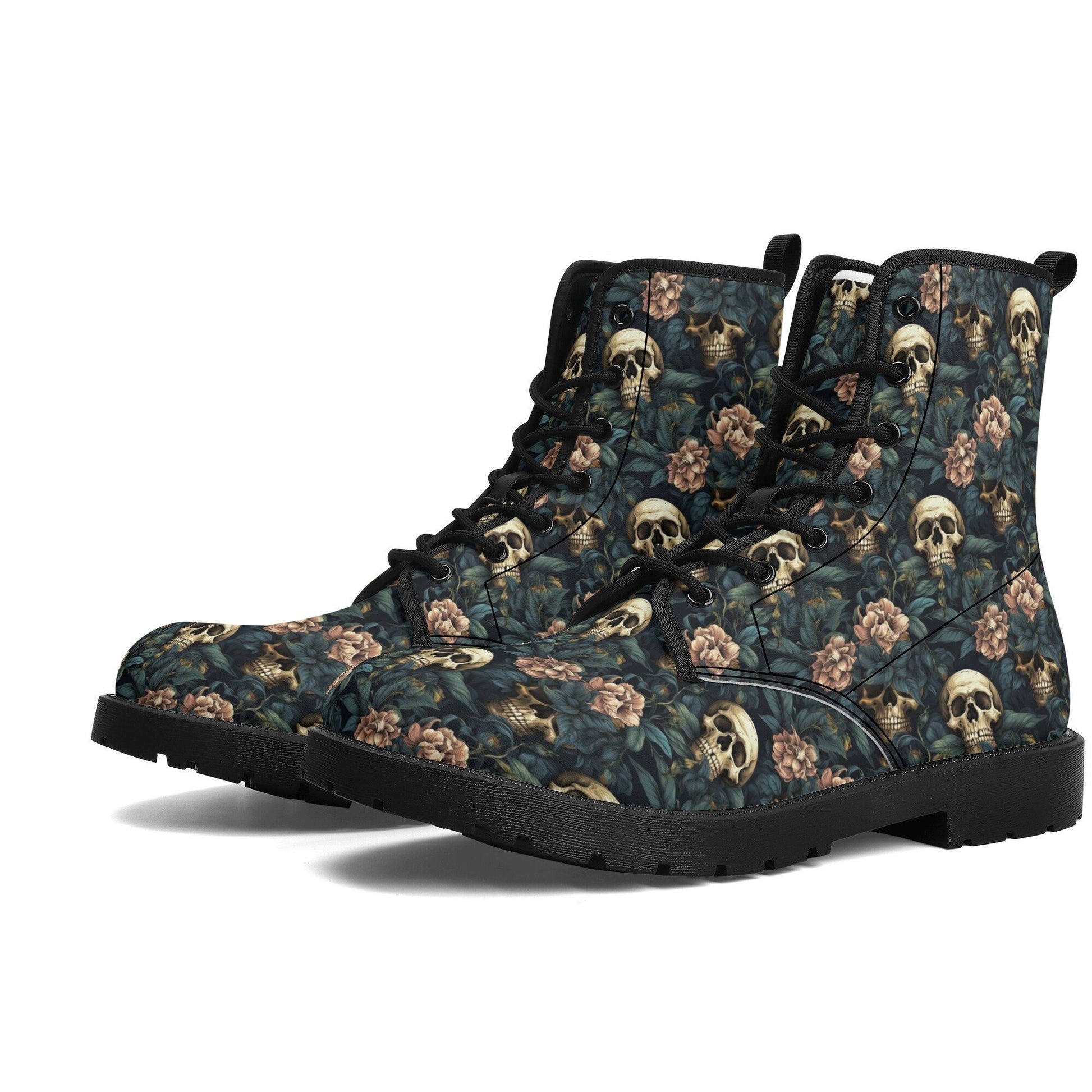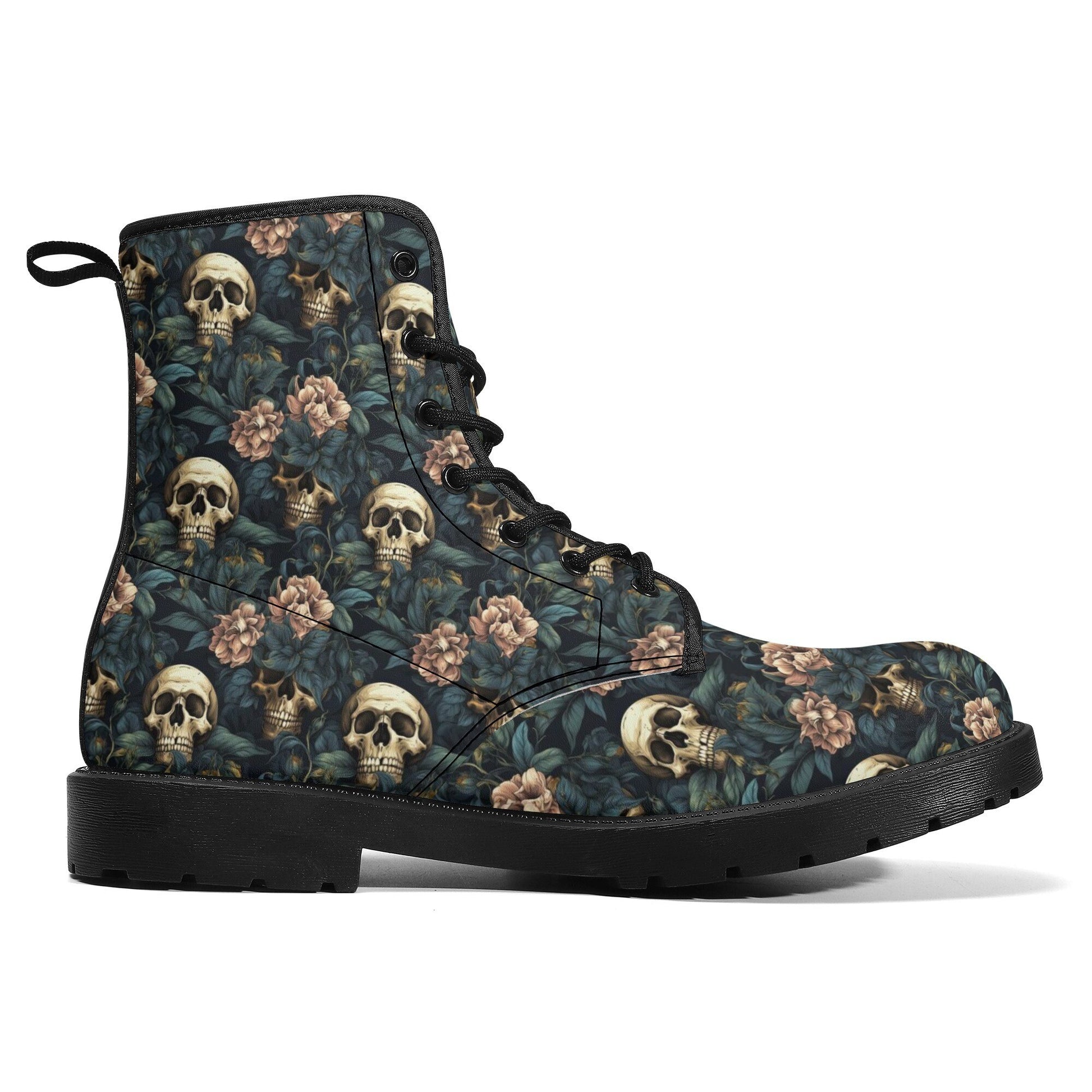 Floral skull leather boots, Halloween skull boots for men, Gothic skeleton skull boots for women, skull boots, Rose skulls men women boots