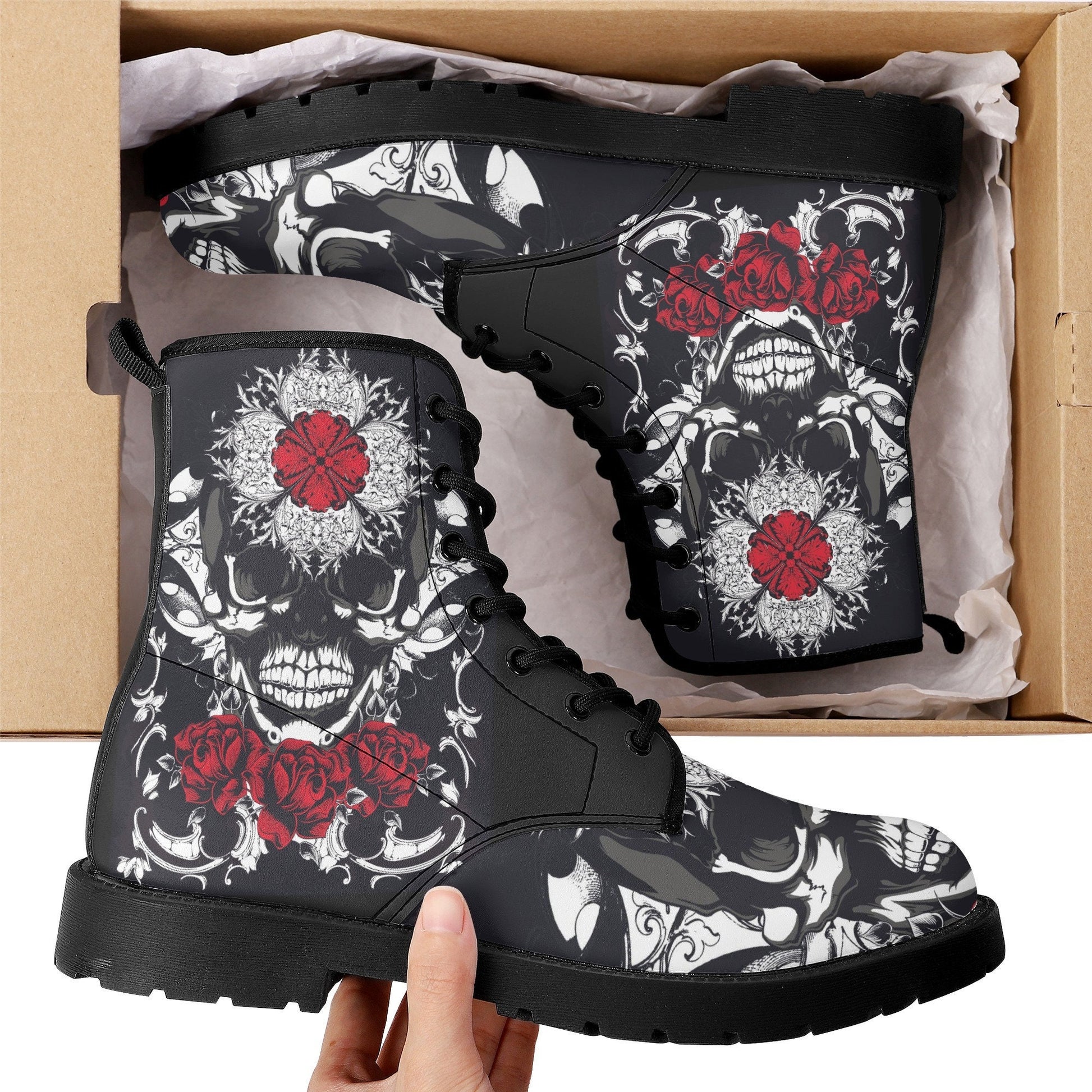 Skull men's women's boots, Floral skull leather boots, rose skull boots for men women, Halloween skull women's boots, skeleton boots, grim reaper skull leather boots, Gothic skull leather boots sugar skull boots for men women, Halloween skull women's boots, skeleton boots, grim reaper skull leather boots, horror skull gothic boots for men women