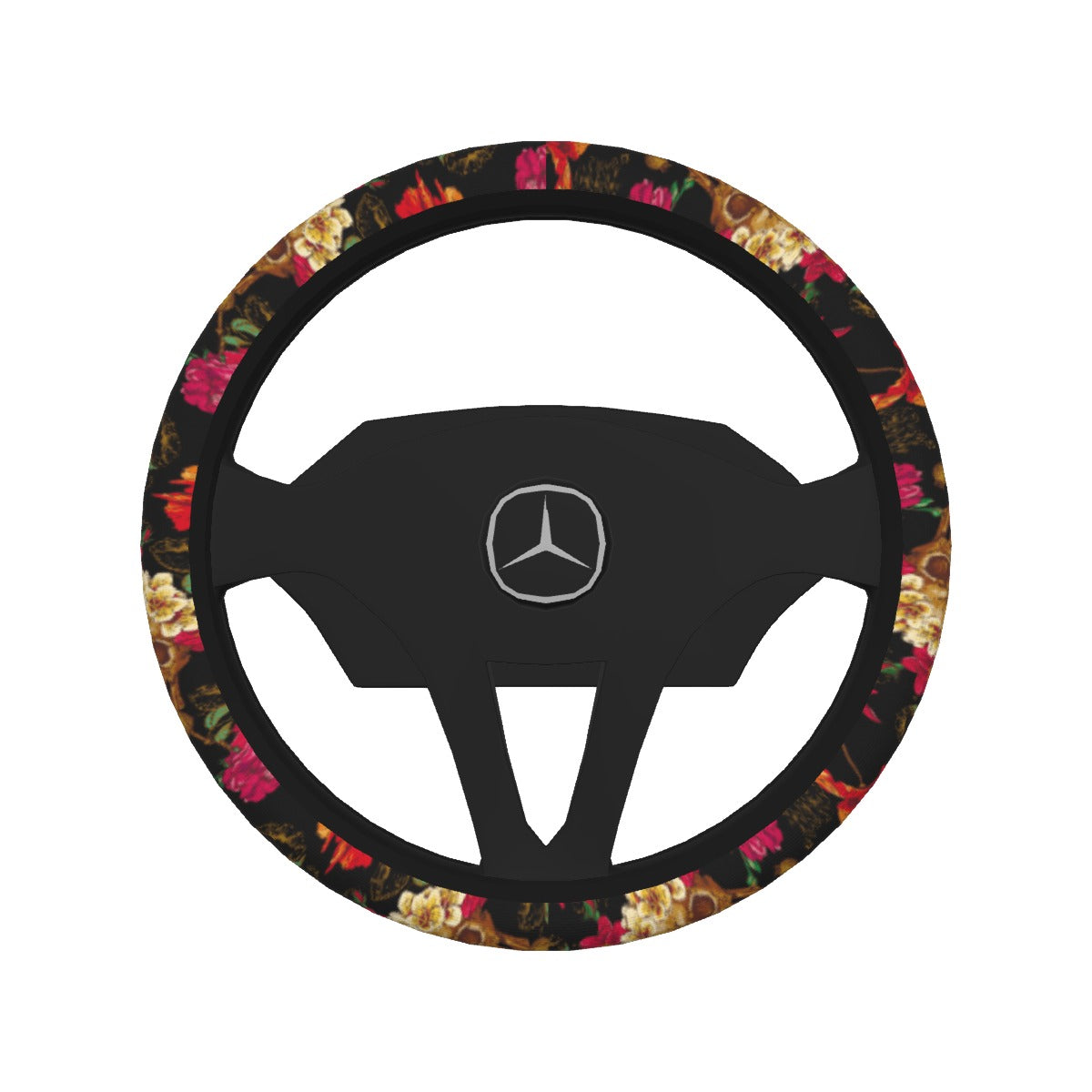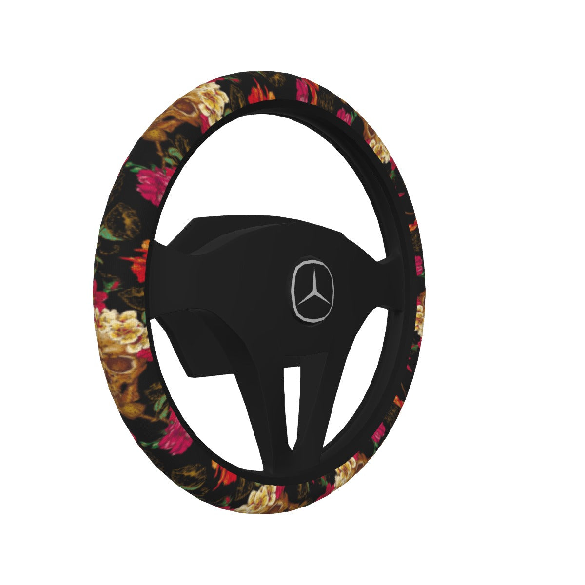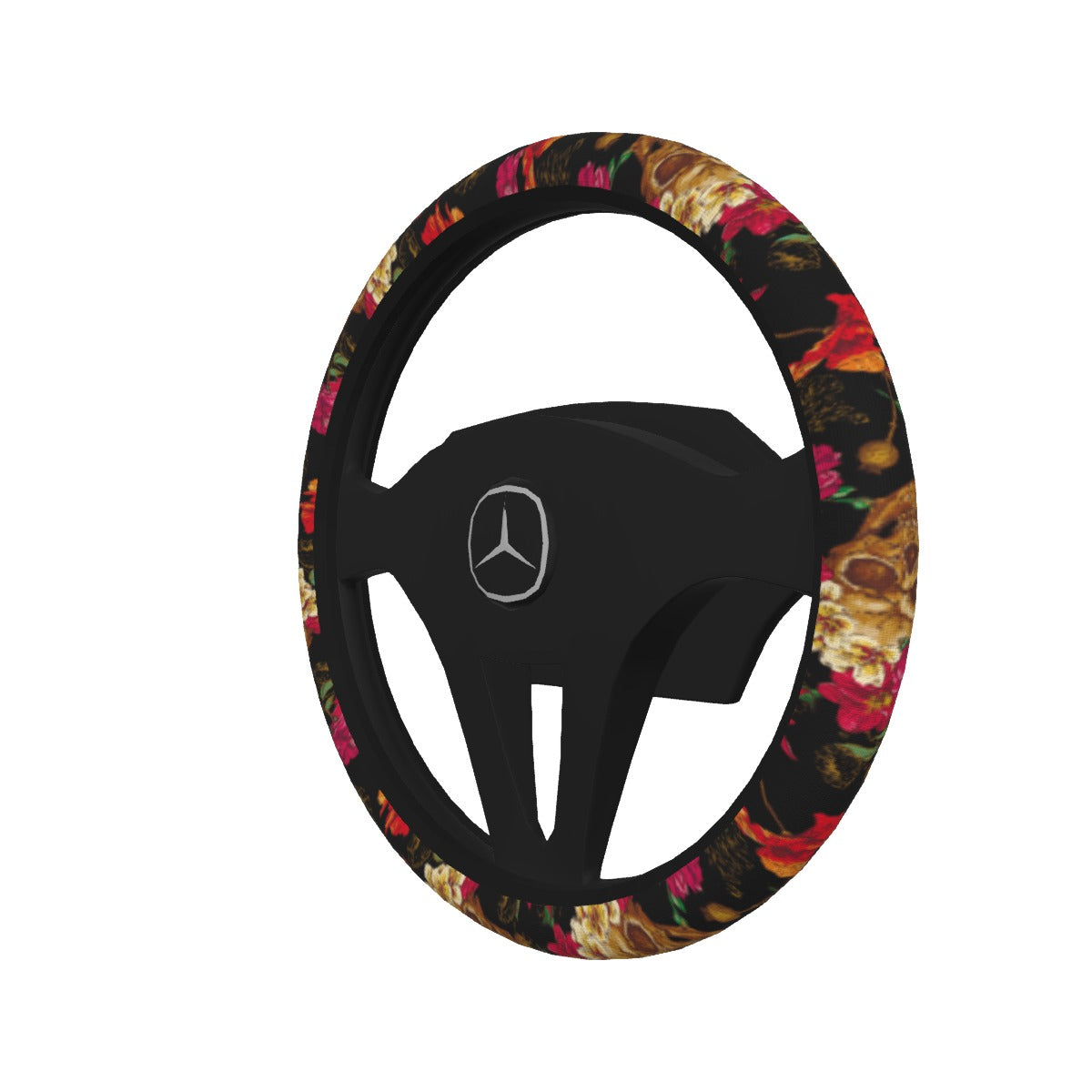 Floral skull Steering Wheel Cover, Day of the dead floral skull, Gothic Halloween car accessories steering wheel covers