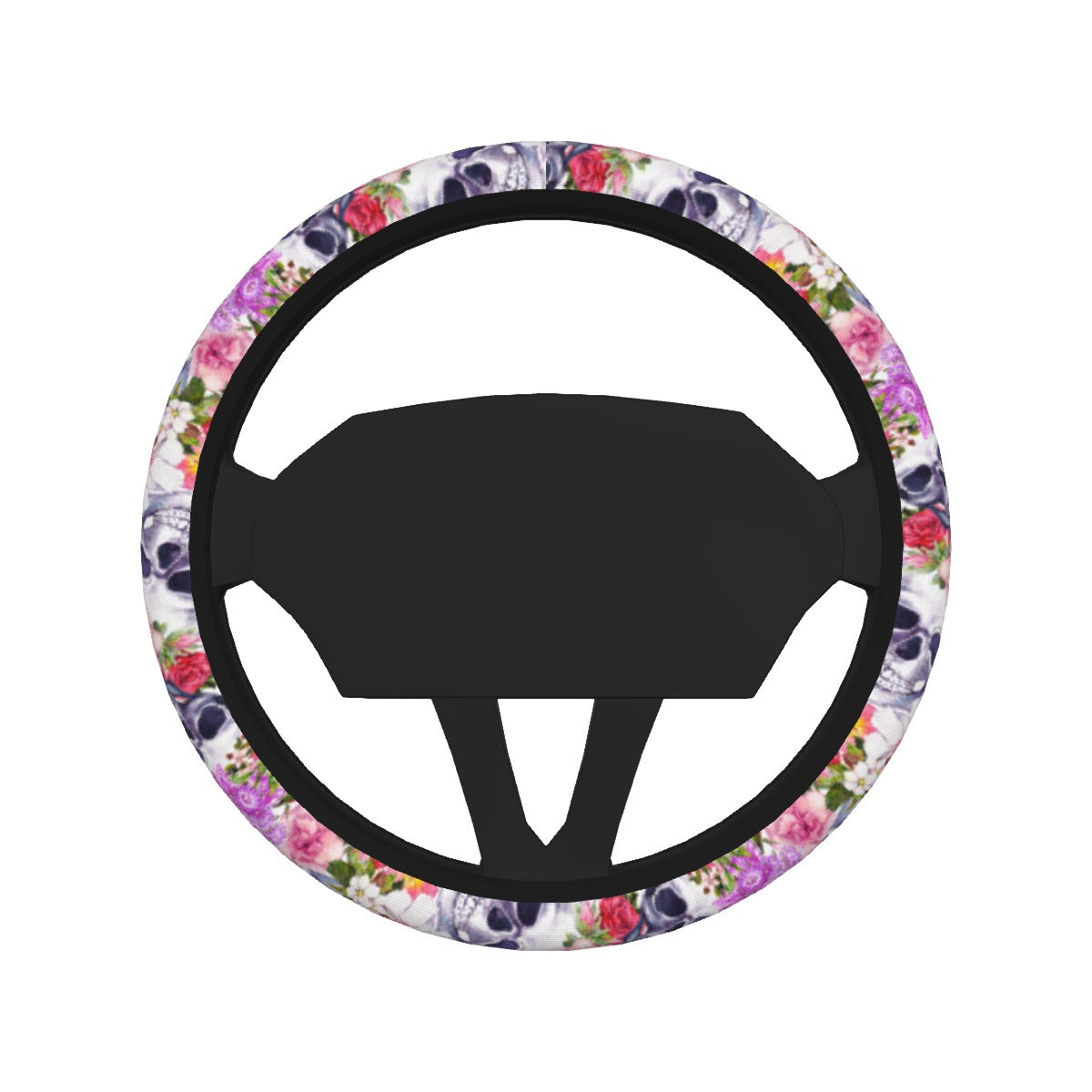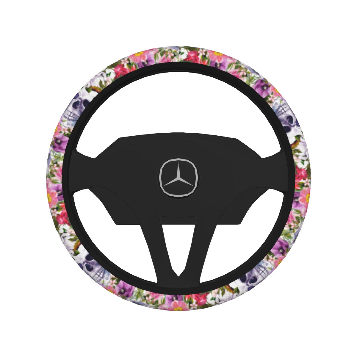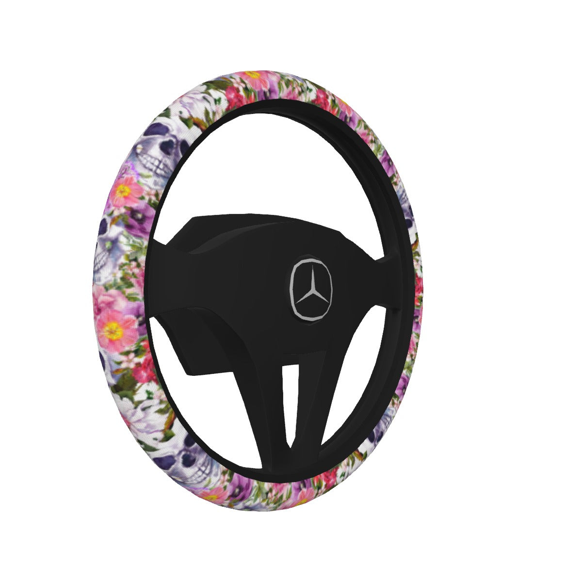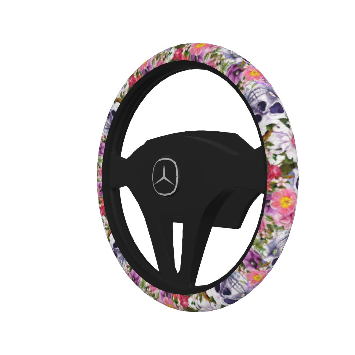 Floral skull Steering Wheel Cover, Skeleton floral gothic skull steering wheel cover