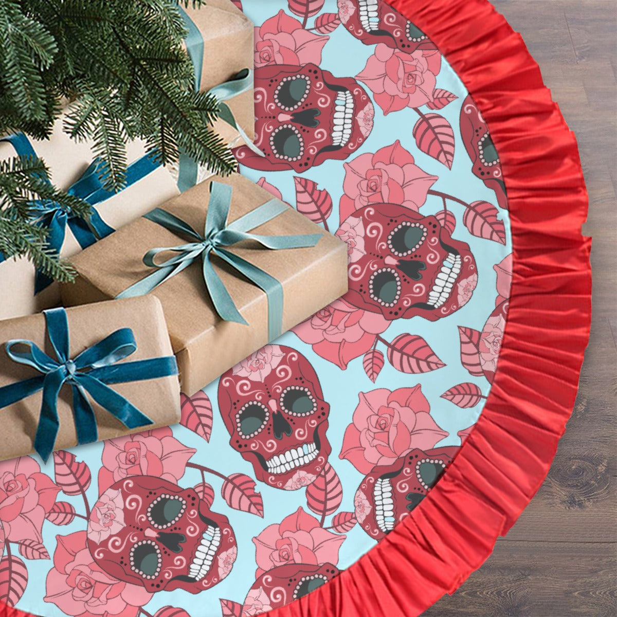 Floral sugar skull pattern Red Christmas Tree Skirt