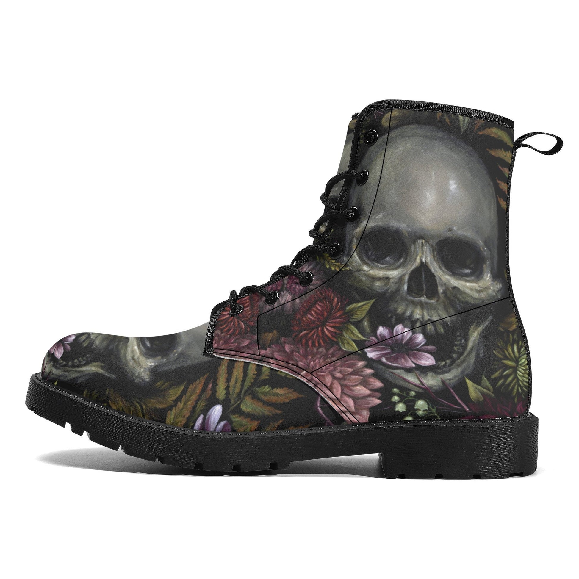 Flower skull boots for men women, Floral punisher skull gothic women boots skeleton boots, Halloween reaper leather boots shoes streetwear