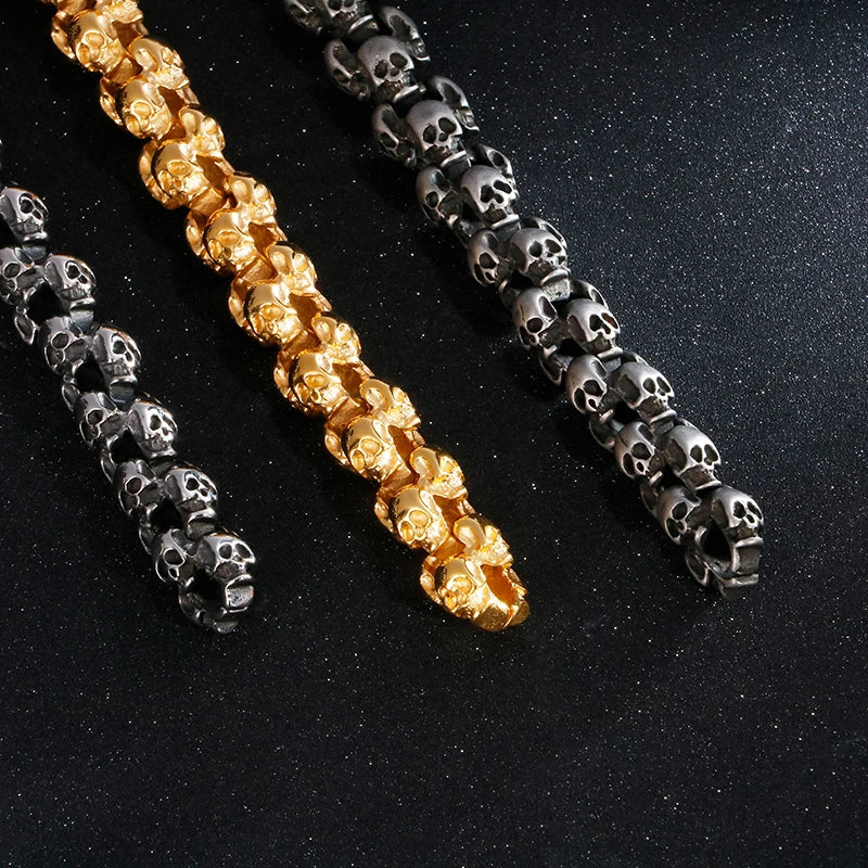 Fongten 12/15mm Skull Charm Bracelets For Men Stainless Steel Steleton Chain Mens Wristband Bracelet Bangle Gothic Jewelry