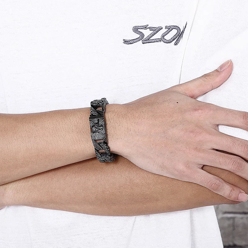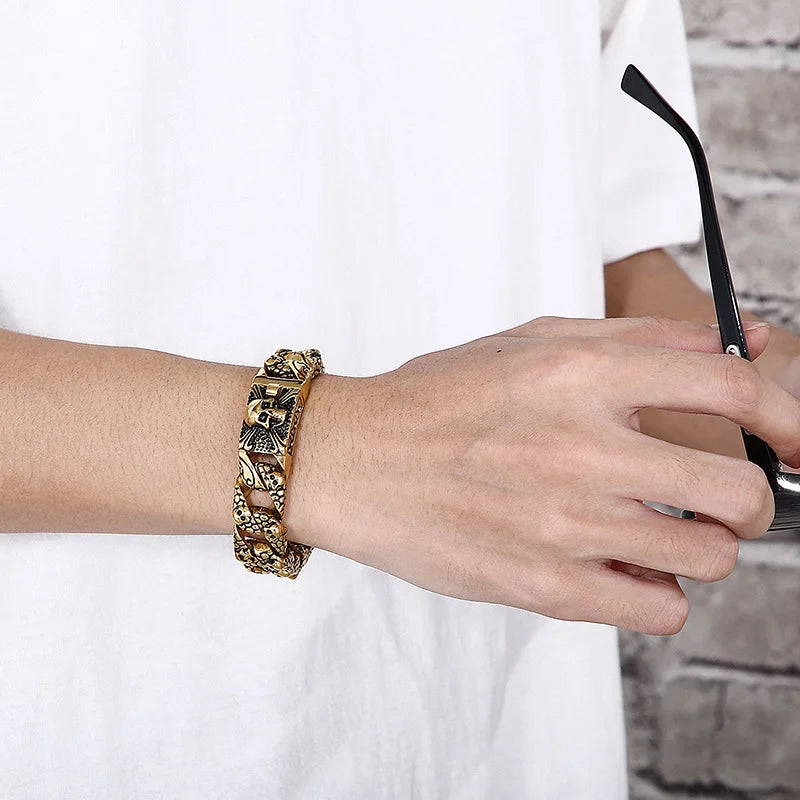 Fongten Gothic Mens Bracelets Stainless Steel Skull Franco Curb Chain Bracelet For Men Multiple Color Skeleton Armband Jewelry