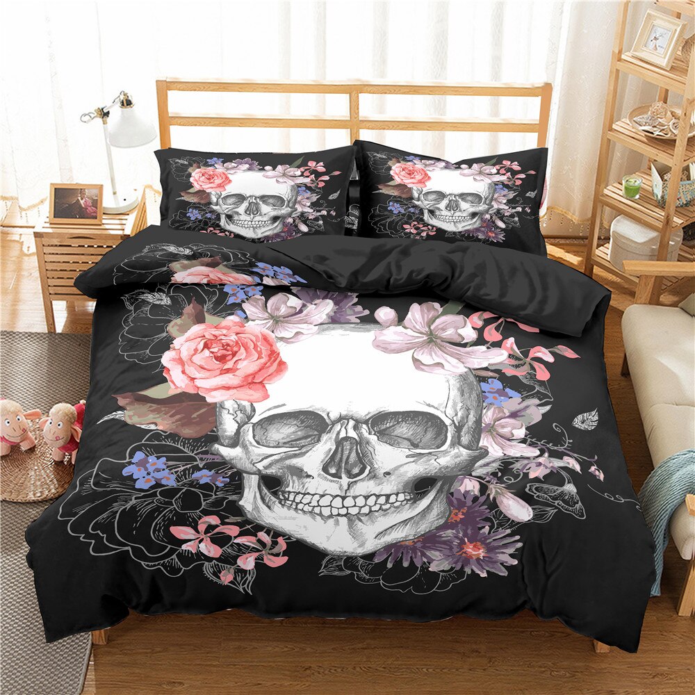 Gothic Skull Bedding Set Twin Full Queen King Double Sizes Duvet Cover Sugar Skull