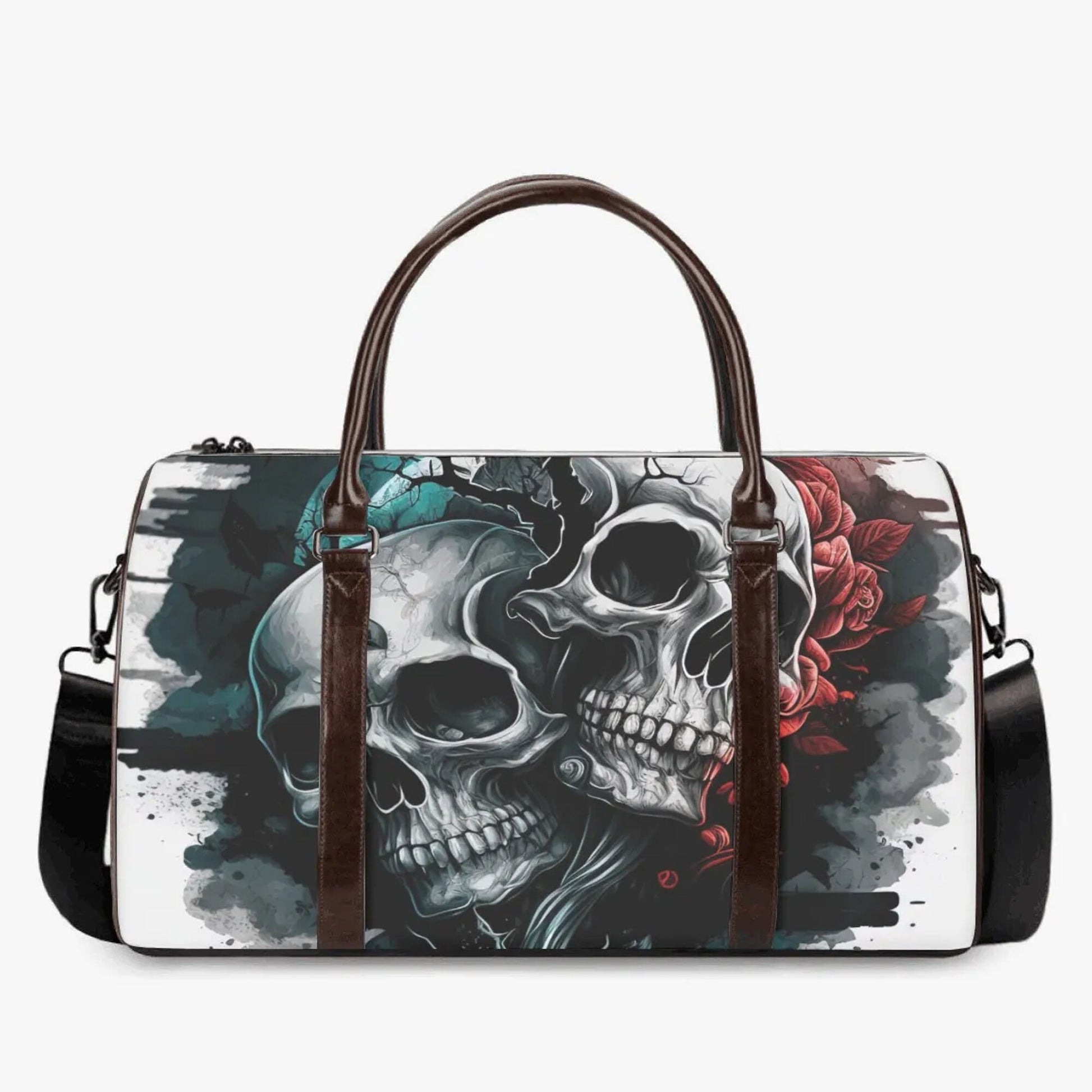 Gothic skull Carry on Weekender Overnight Bag, punisher skull monogrammed bag, floral skull Carry On Bag, punisher skull shoulder travel bag