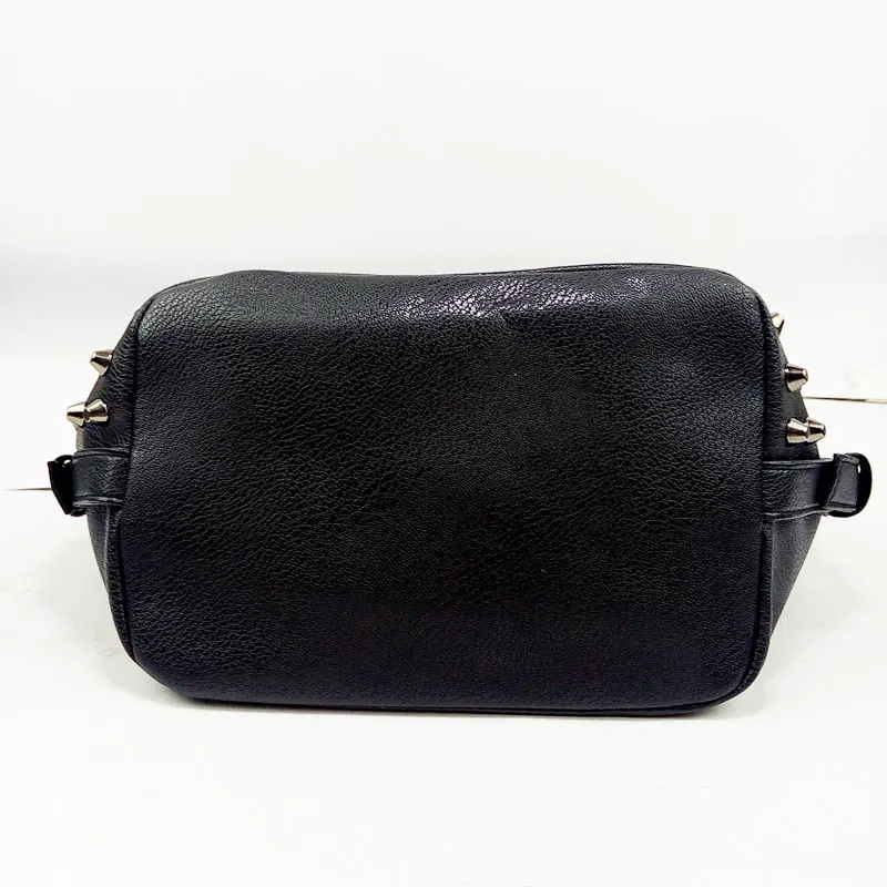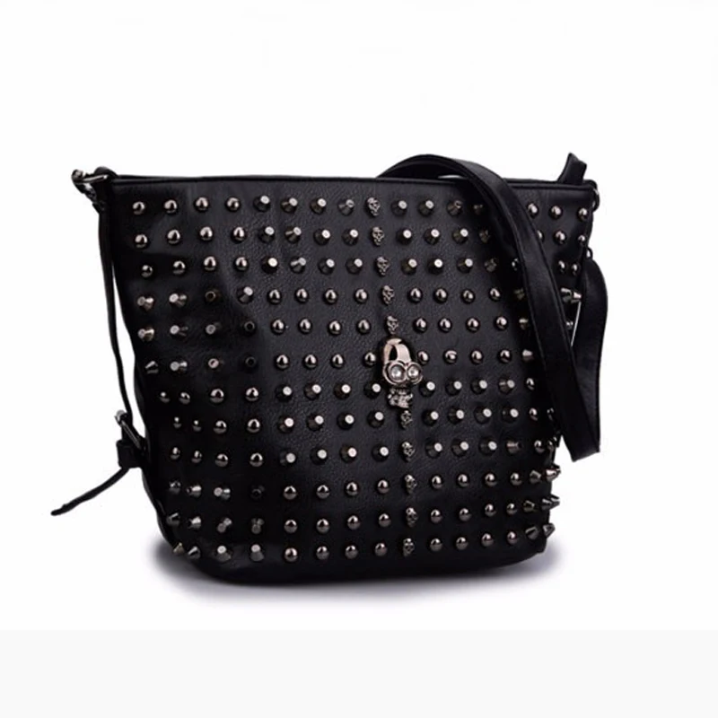 Annmouler Fashion Women Shoulder Bag Pu Leather Crossbody Bag Punk Messenger Bag for Girls Rivet Skull Bucket Bag Black Purse