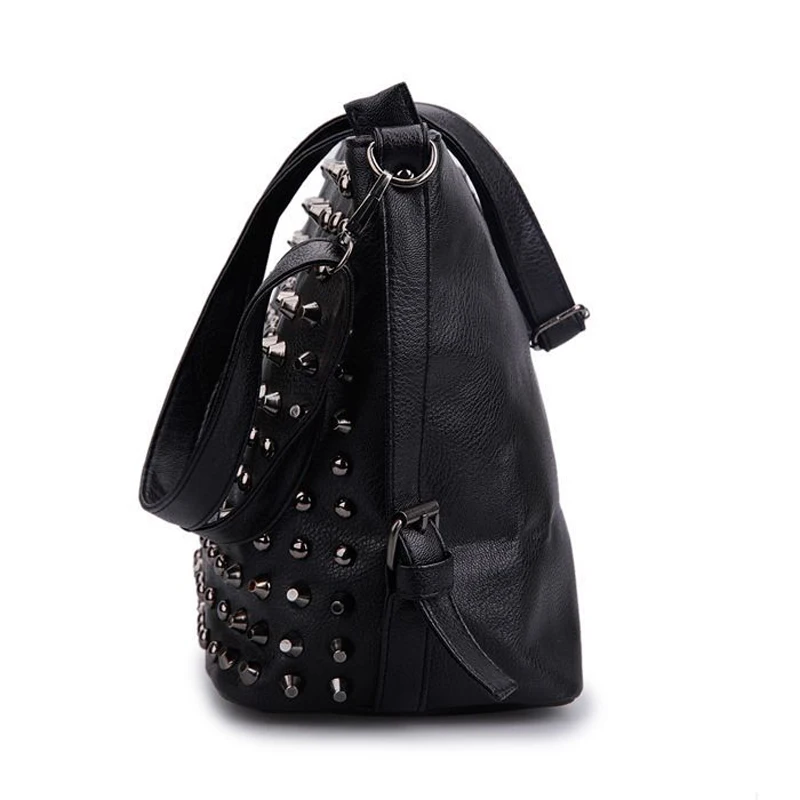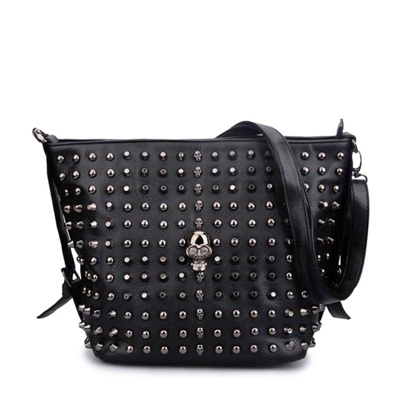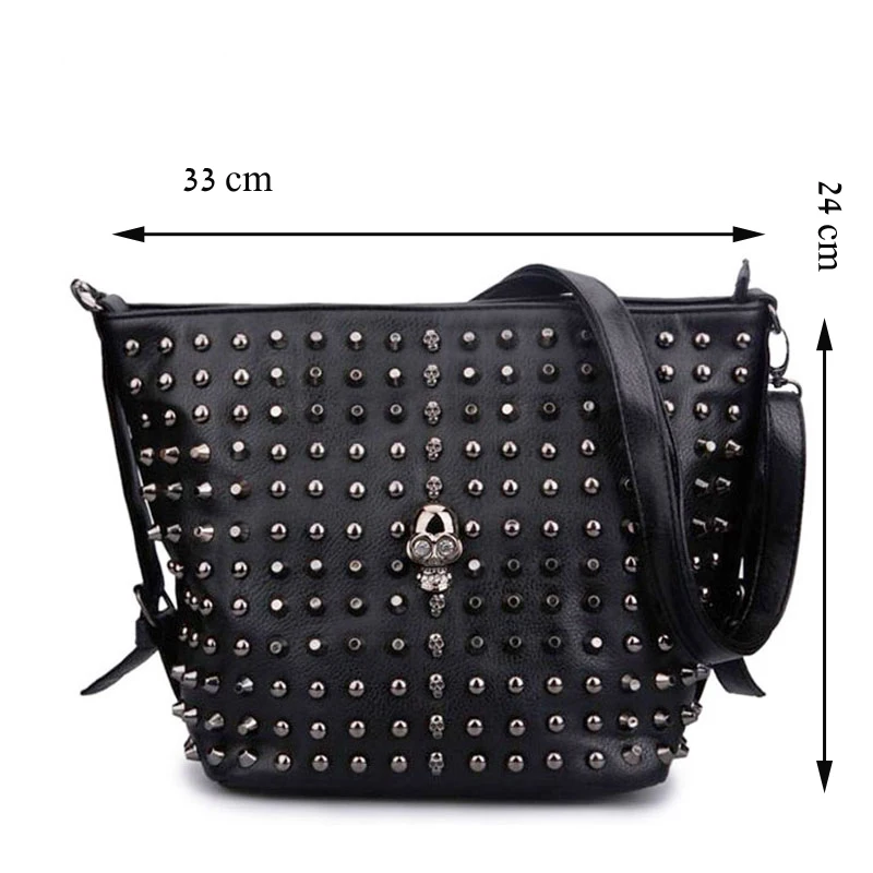 Gothic skull Fashion Women Shoulder Bag Pu Leather Crossbody Bag Punk Messenger Bag for Girls Rivet Halloween skeleton Bucket Bag Black Purse