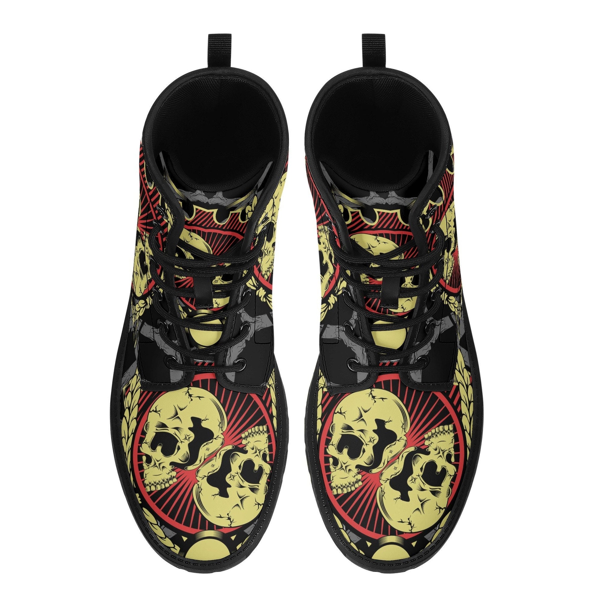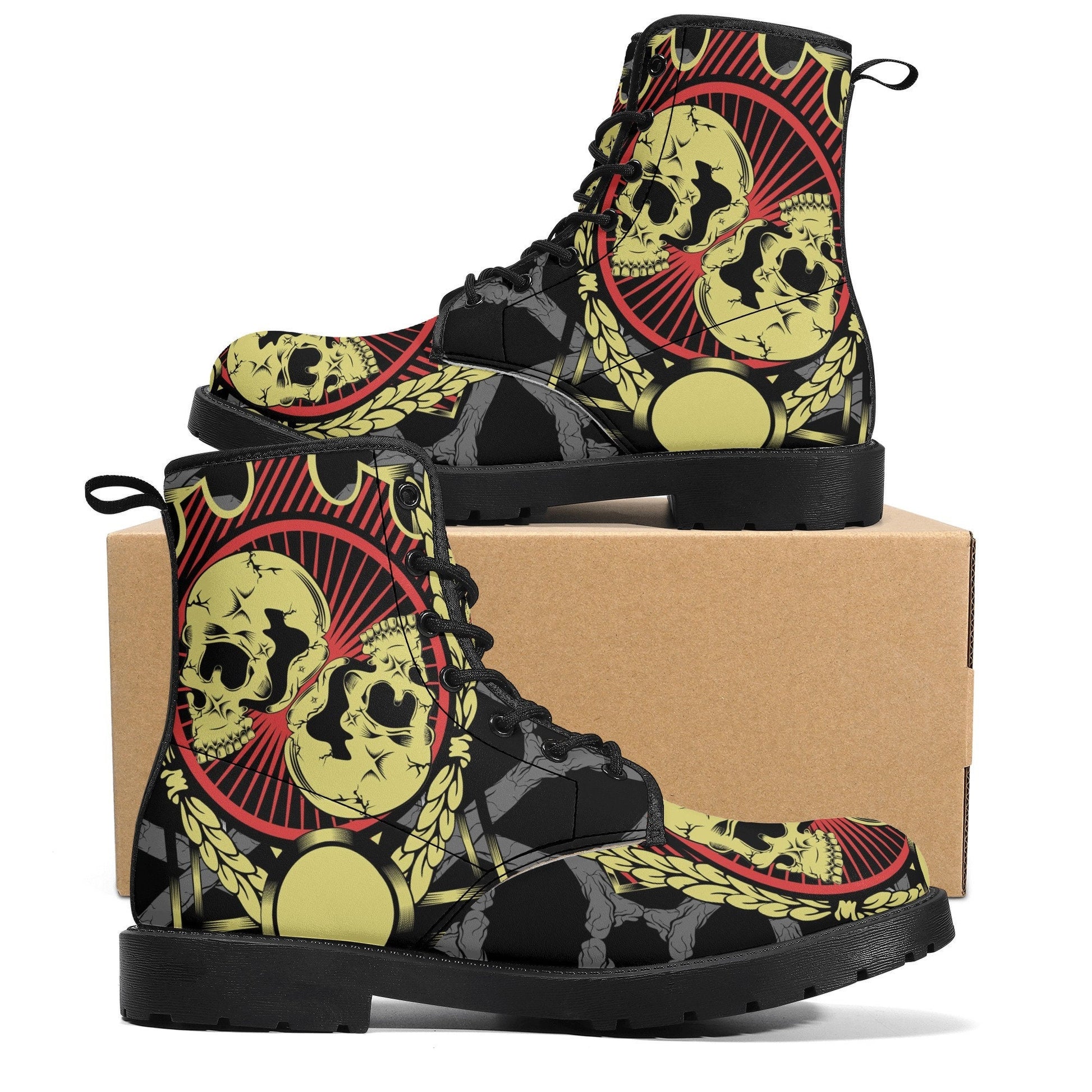 Gothic skull leather boots, Halloween skull boots for men Evil skeleton skull boots for women, skull biker boots Grim reaper men women boots