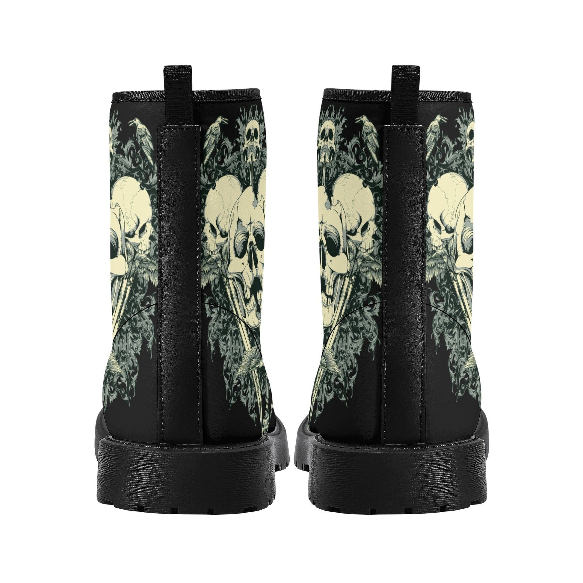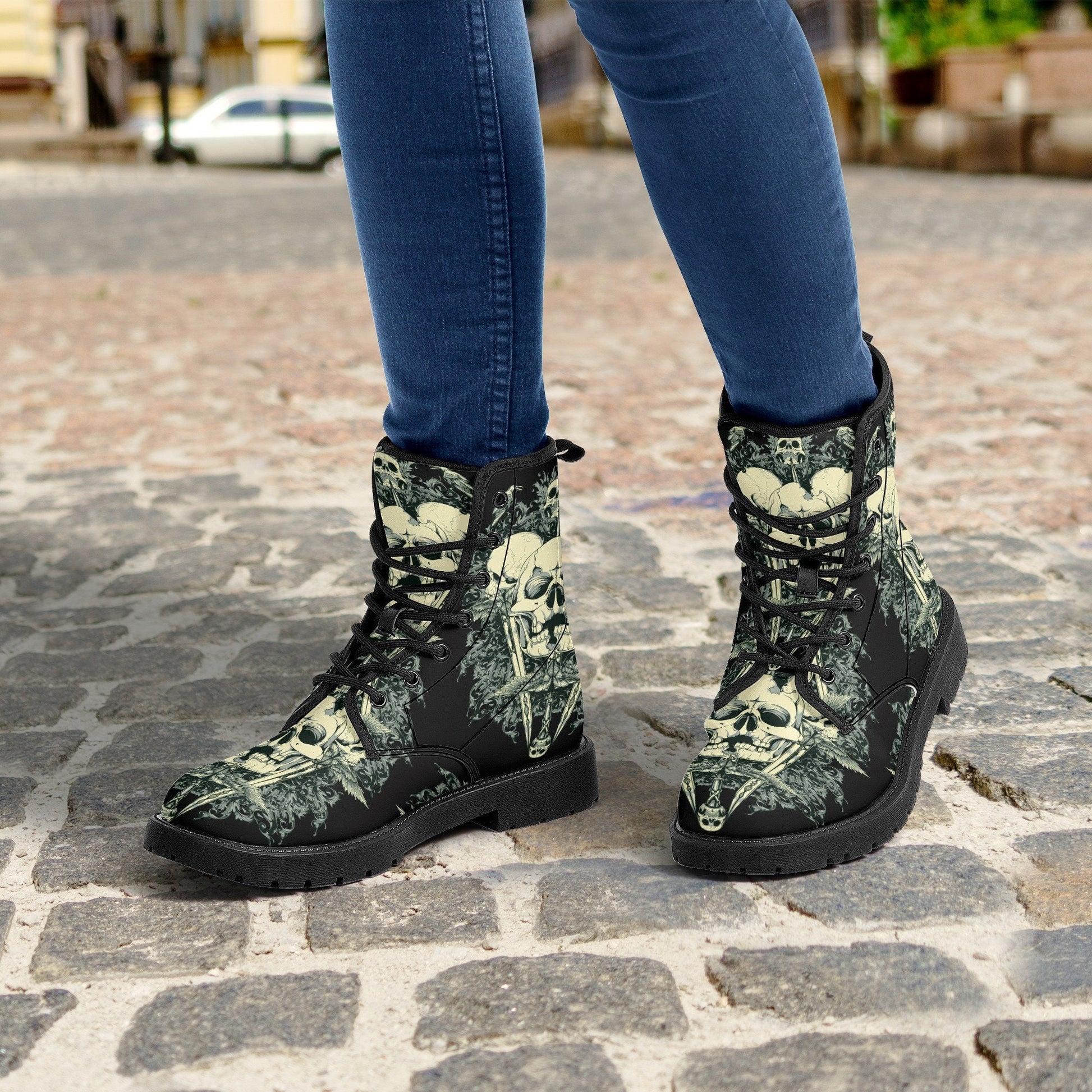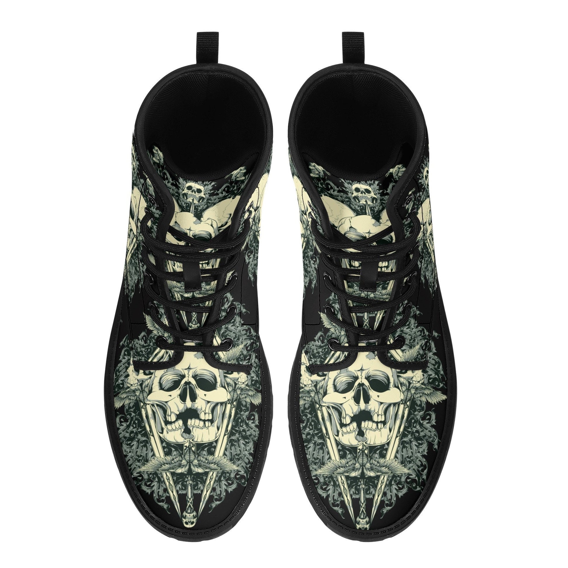Gothic skull leather boots, Halloween skull boots for men, flame skull boots for women, skull floral boots horror skeleton men women boots