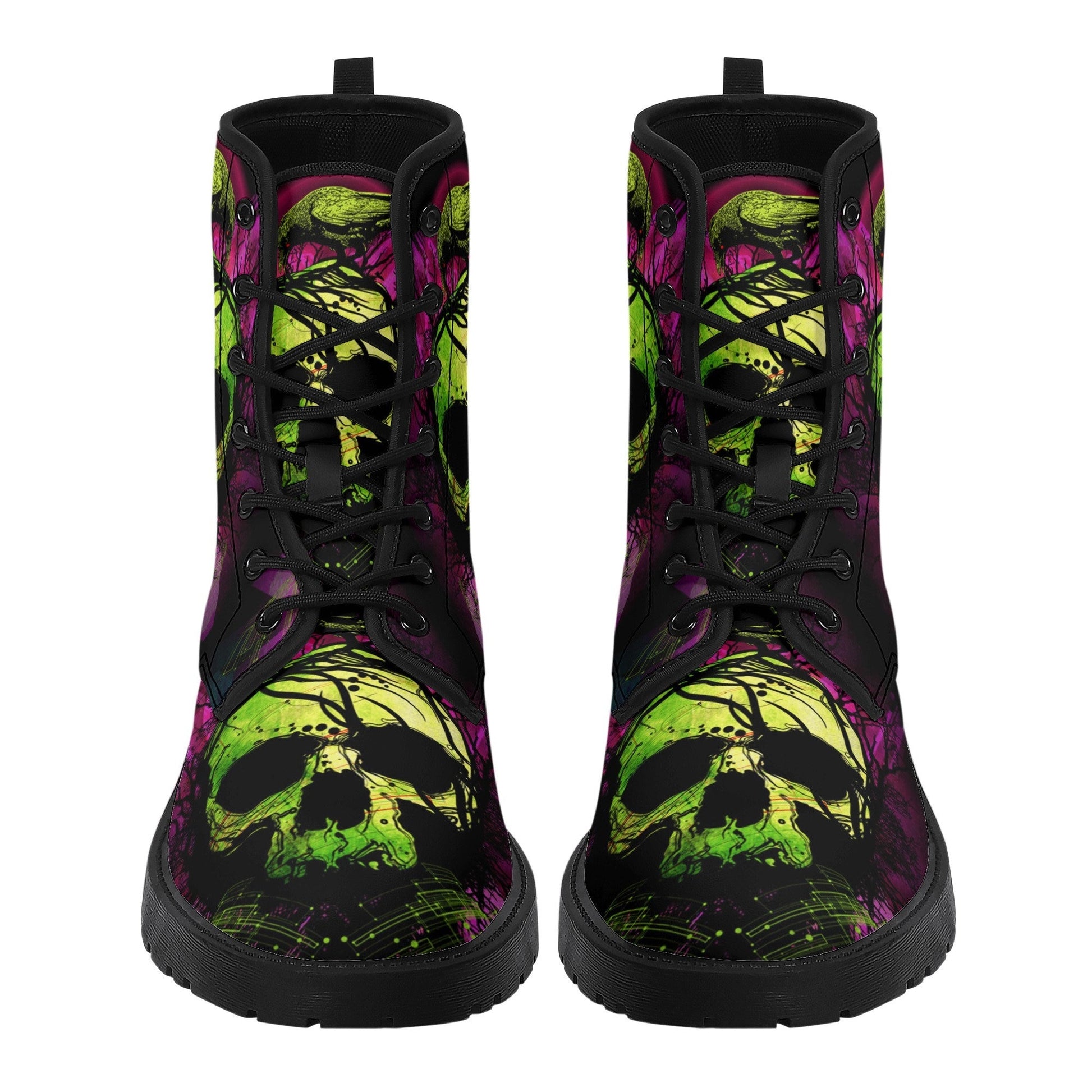 Green skull grim reaper boots for men women, Halloween skull gothic women boots skeleton boots, Death blue skull leather skull boots shoes