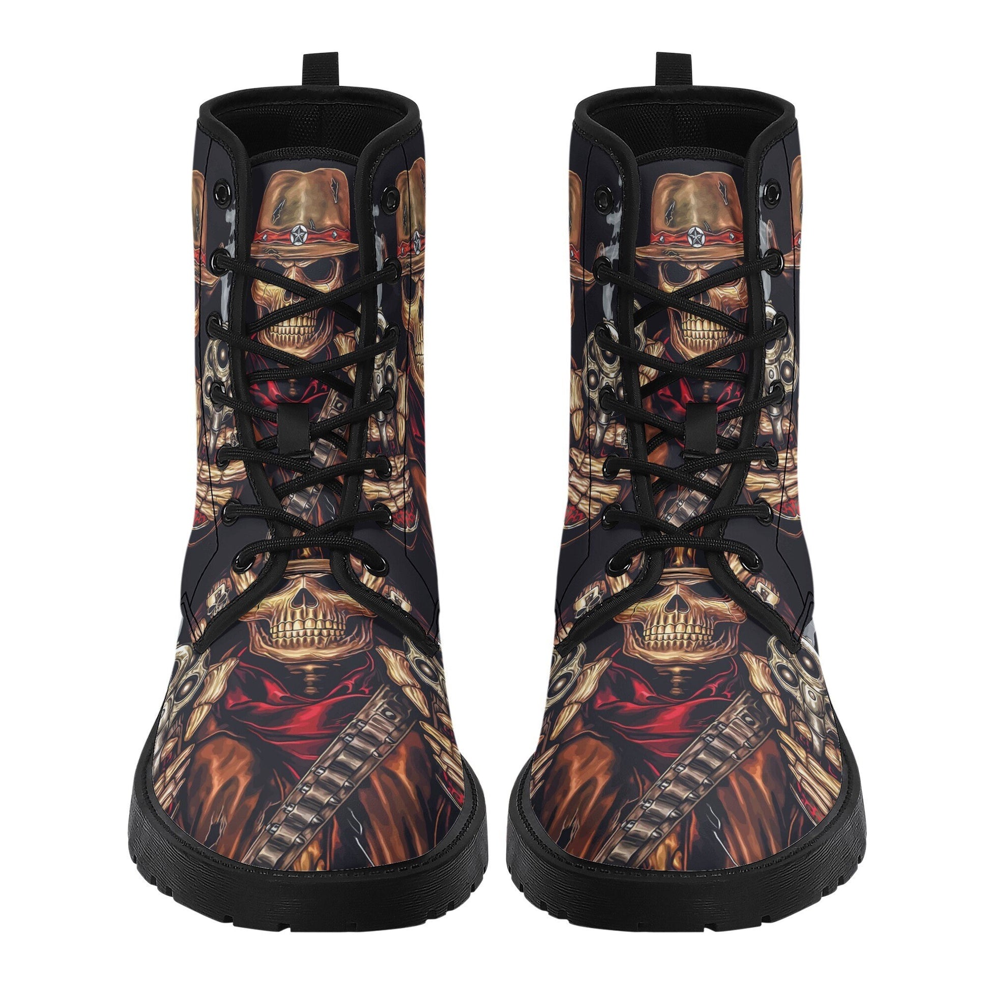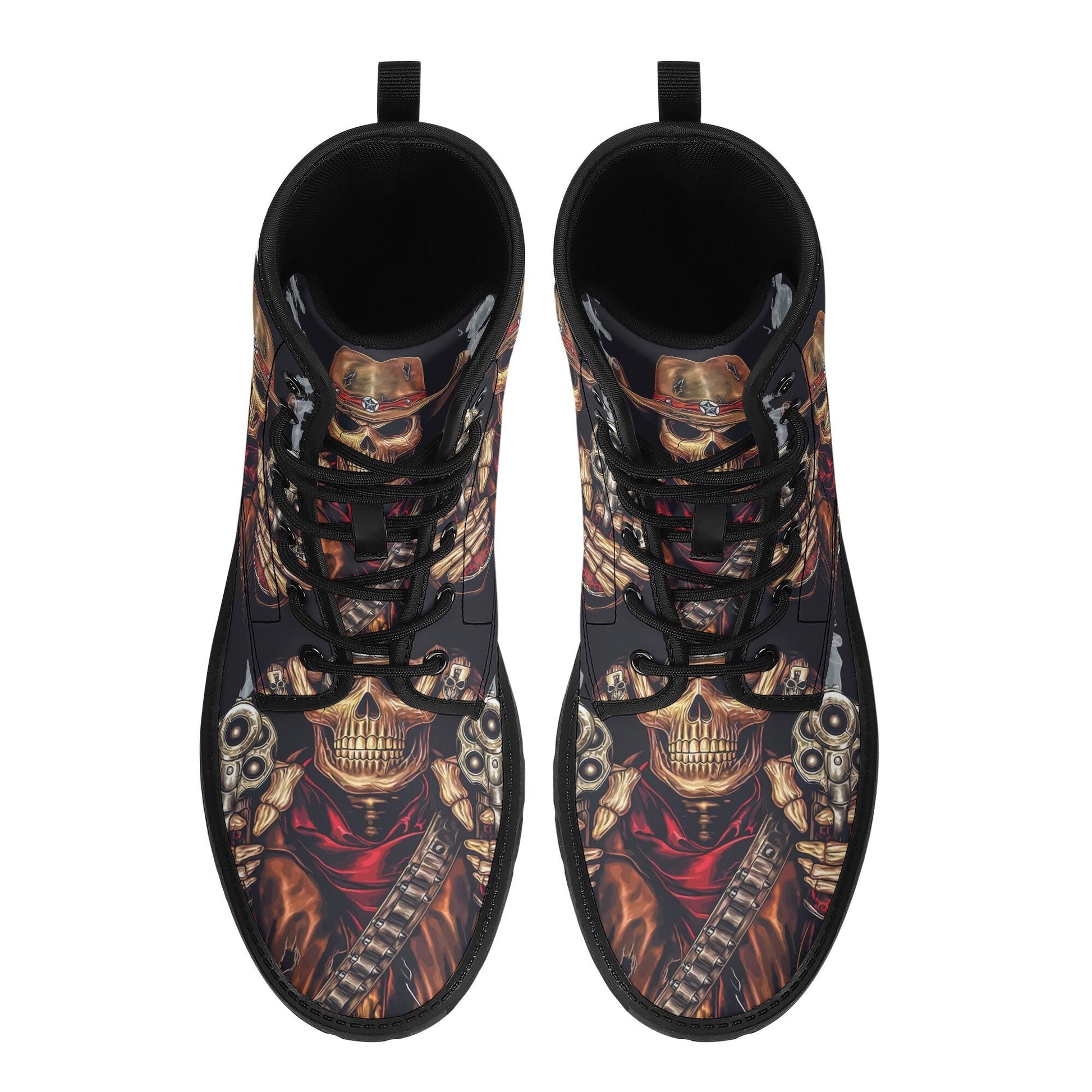 Grim reaper skull men women boots, Punisher horror gothic boots, Halloween skull boots, Skeleton skull grim reaper leather rose skull boots