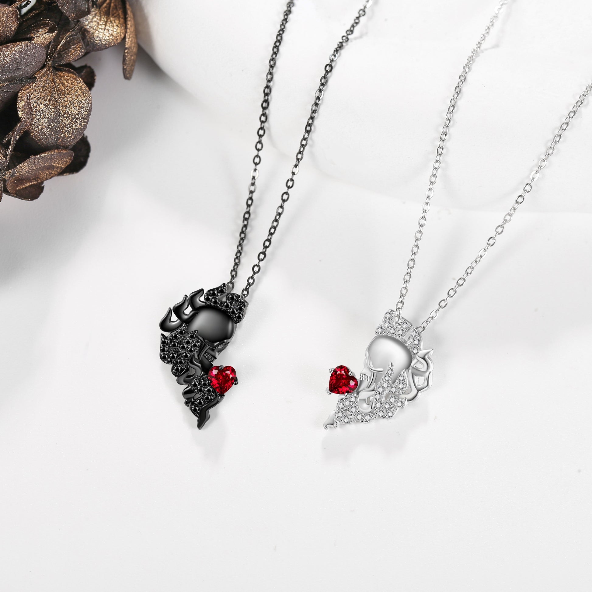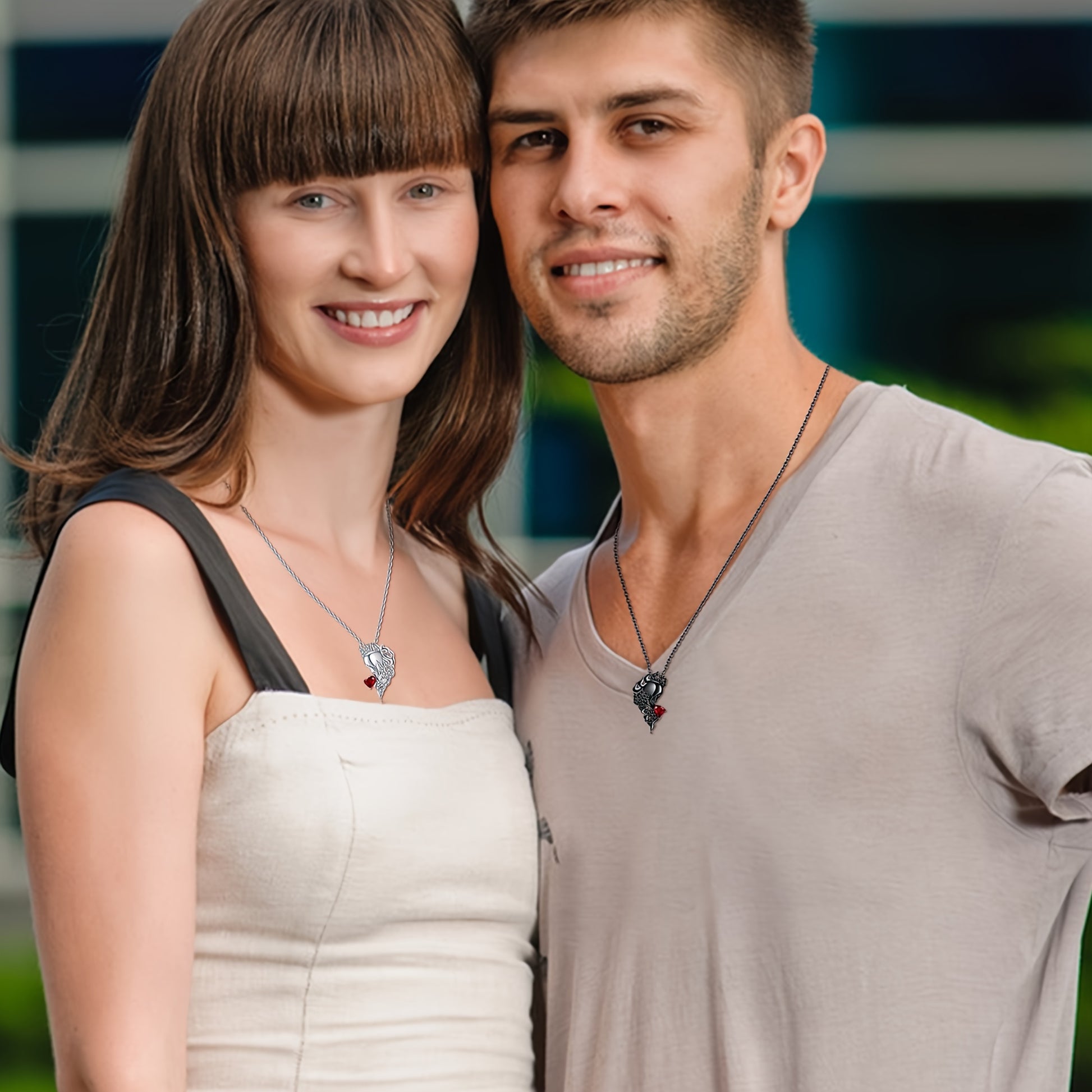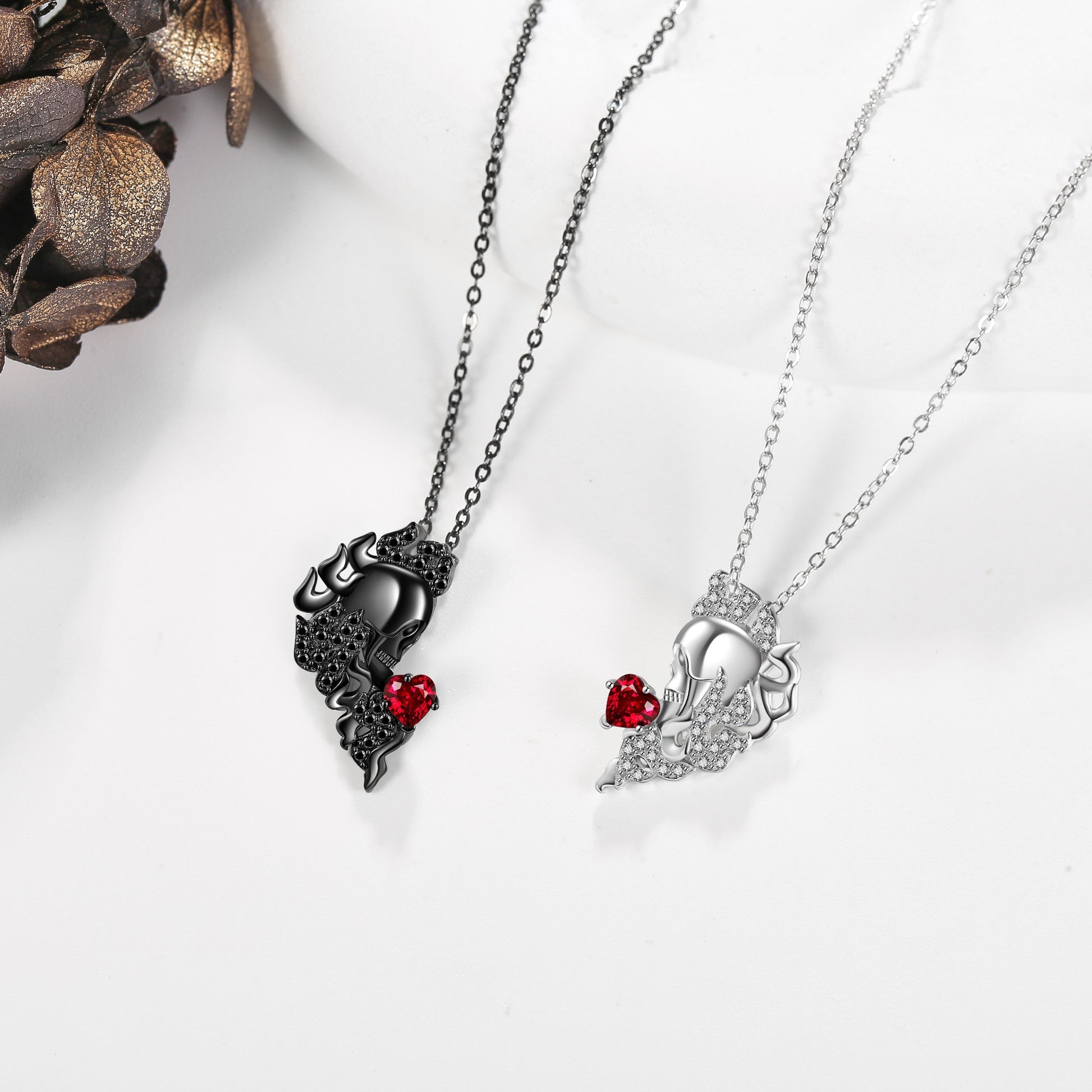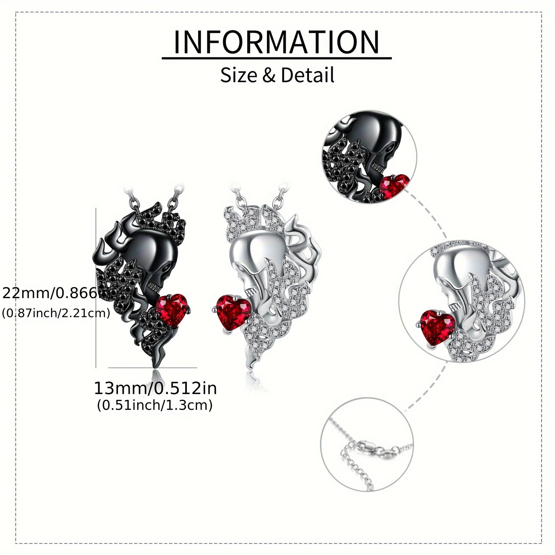 HUKKUN Skull Couple Necklace 925 Sterling Silver His And Hers Matching Necklace Heart Symbol Of Love Pendant Couples Valentine's Day Jewellery Gifts For Couple