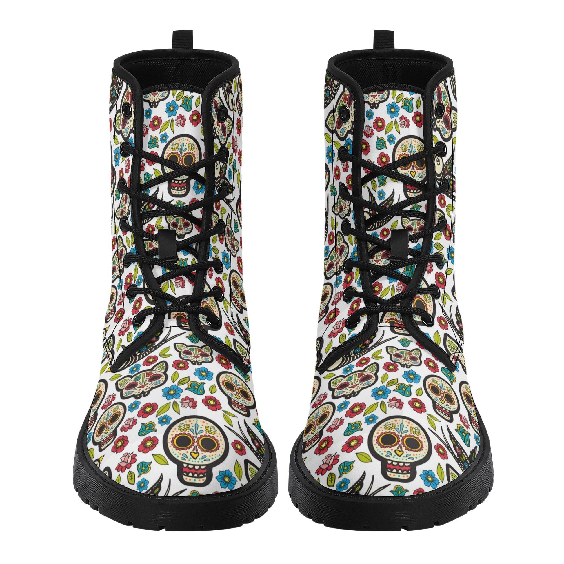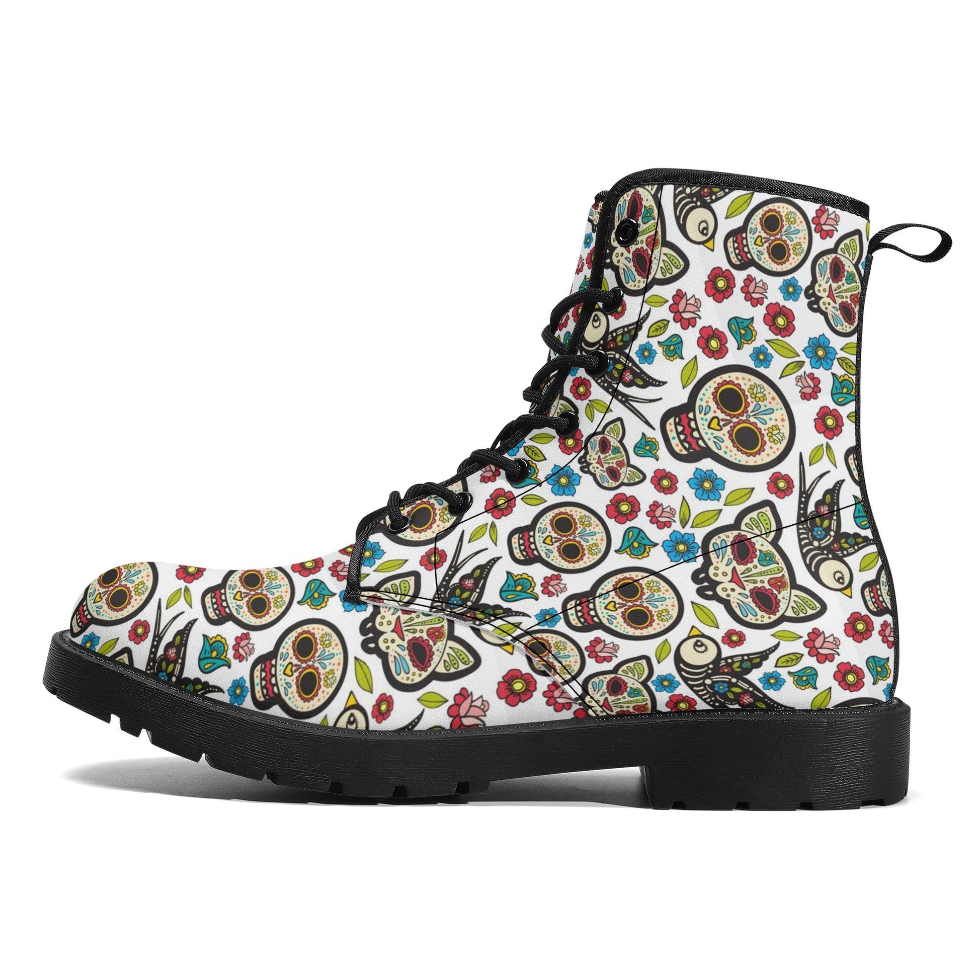 Mexican candy skull leather boots, sugar skull boots for men women, floral skull boots for women men, skull men's boots gothic women boots