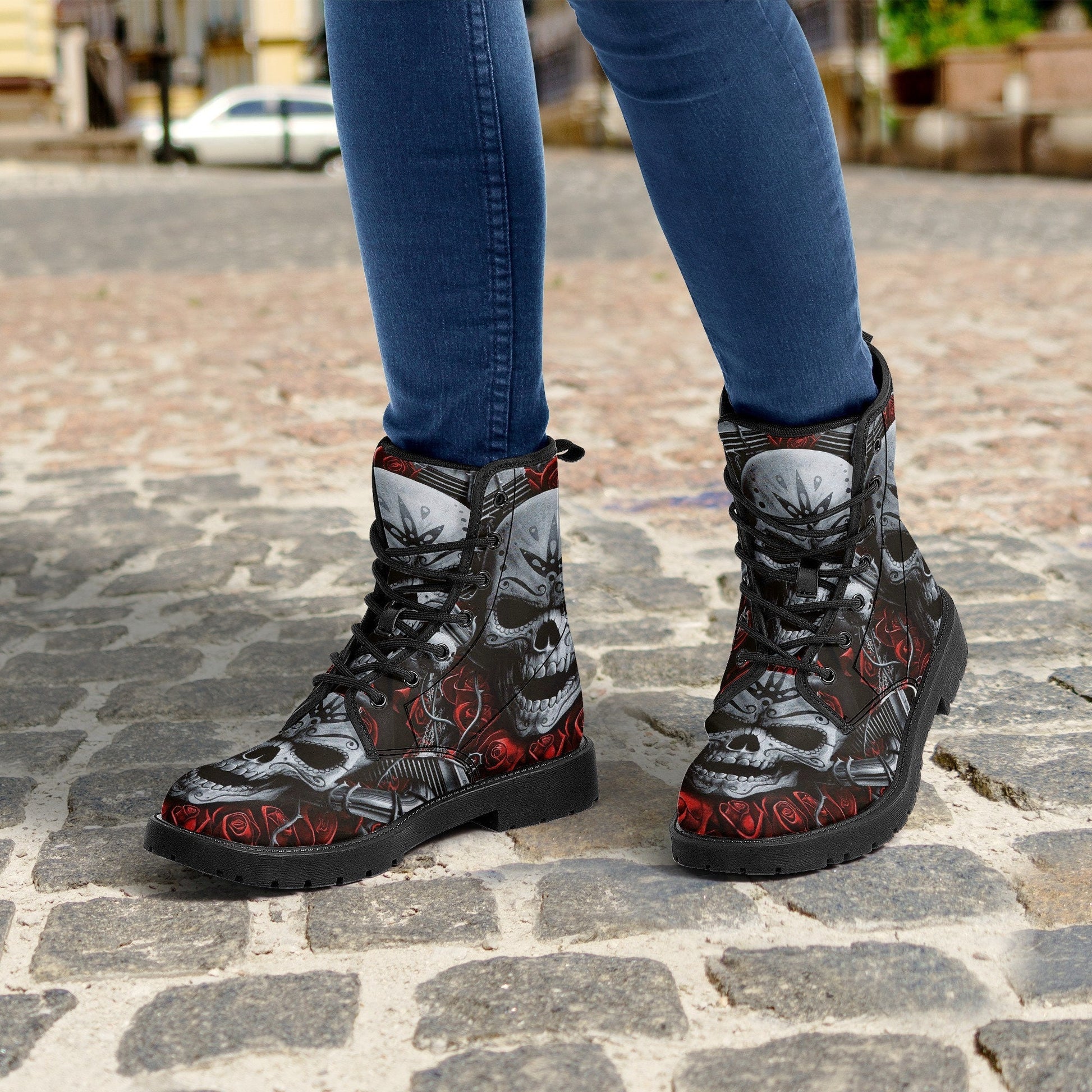 Motorcycle biker skull grim reaper boots for men women, Gothic boots for biker, skeleton boots, Horror grim reaper leather skull boots shoes