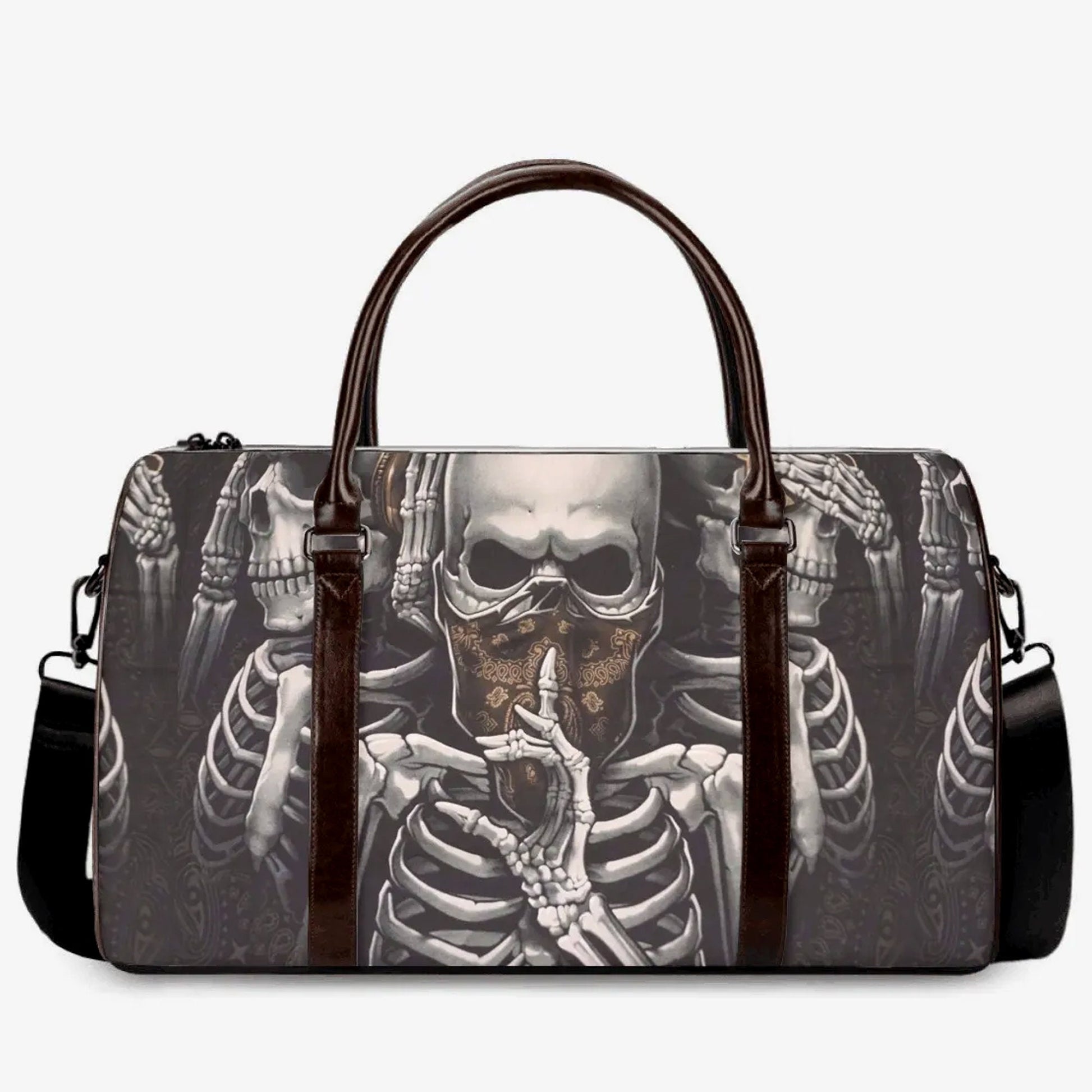 No see no hear no speak skull Canvas Weekend Travel Bag, horror handbag, flaming skull Carry on Weekender Overnight Bag skull Overnight Bag