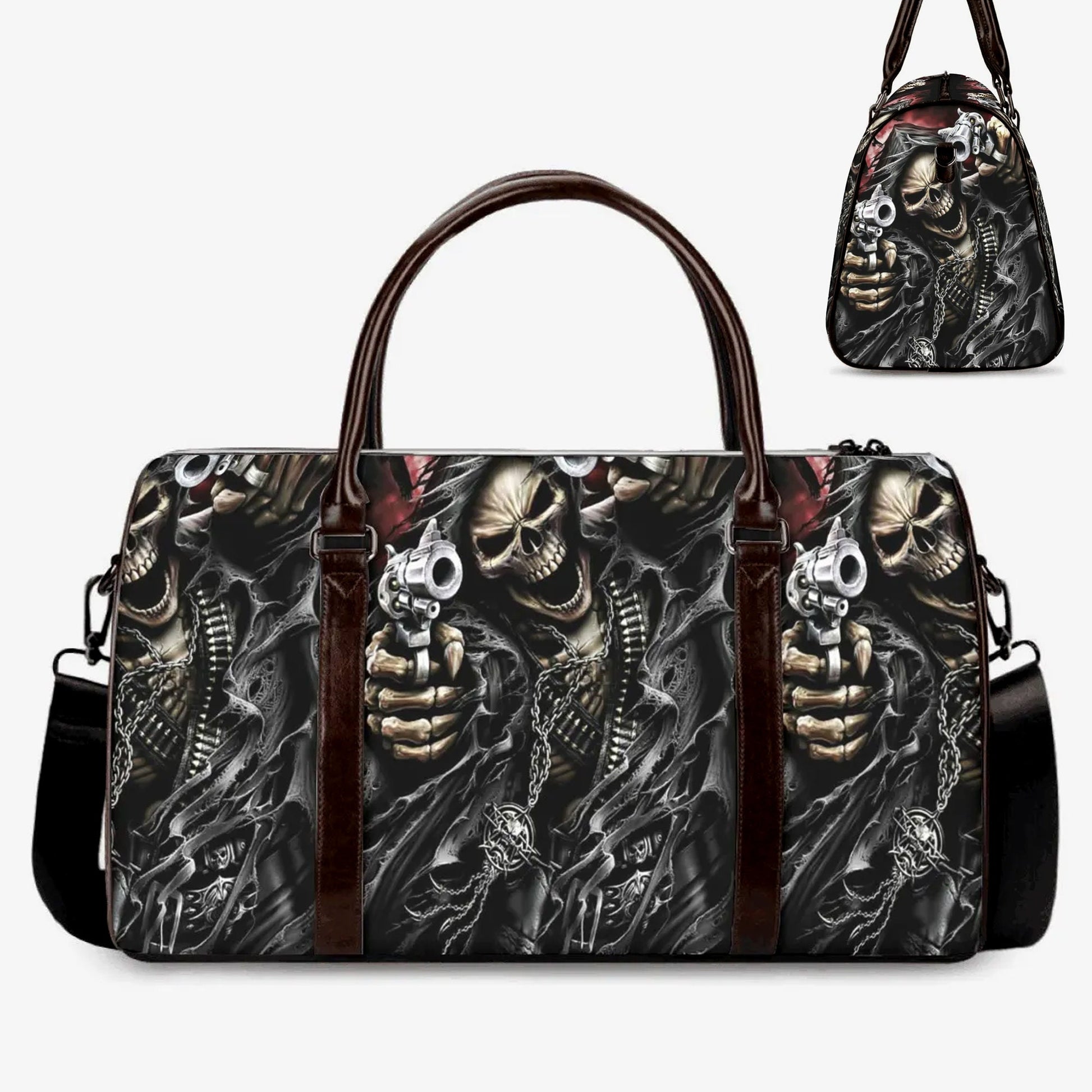 Punisher skull Vacation Holidays Travel Bag, death skull Carry On Bag, flame skull Carry on Weekender Overnight Bag, christmas skull handbag