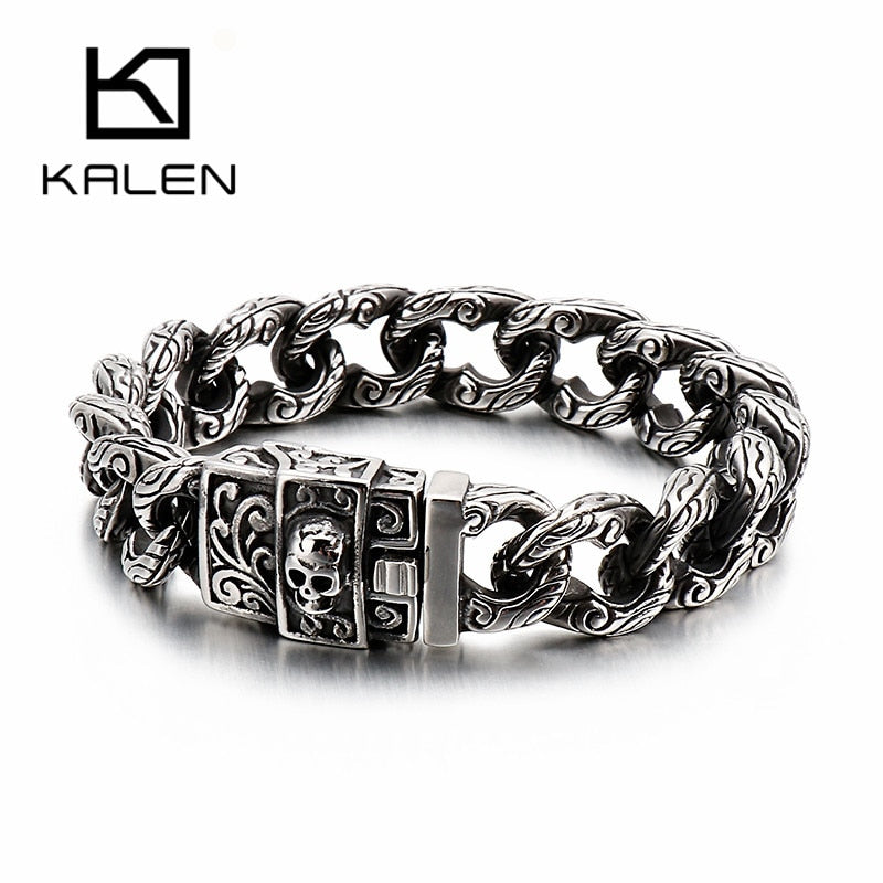 Punk Skull Charm Bracelet Men 21.5cm Stainless Steel
