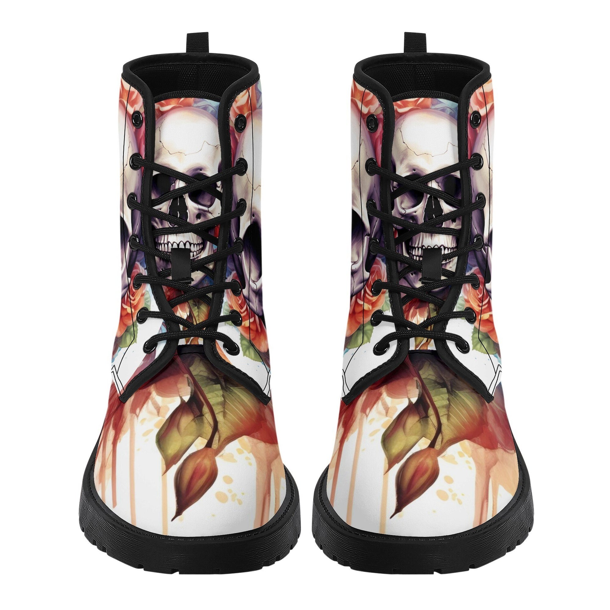 Rose skull shoes, floral skull ankle booties, flower skull waterproof shoes, motorcycle skull boots, skull ankle Boots, flower skull ankle booties, skeleton ankle booties, punisher skull unisex shoes, halloween men women boots, rose skull waterproof