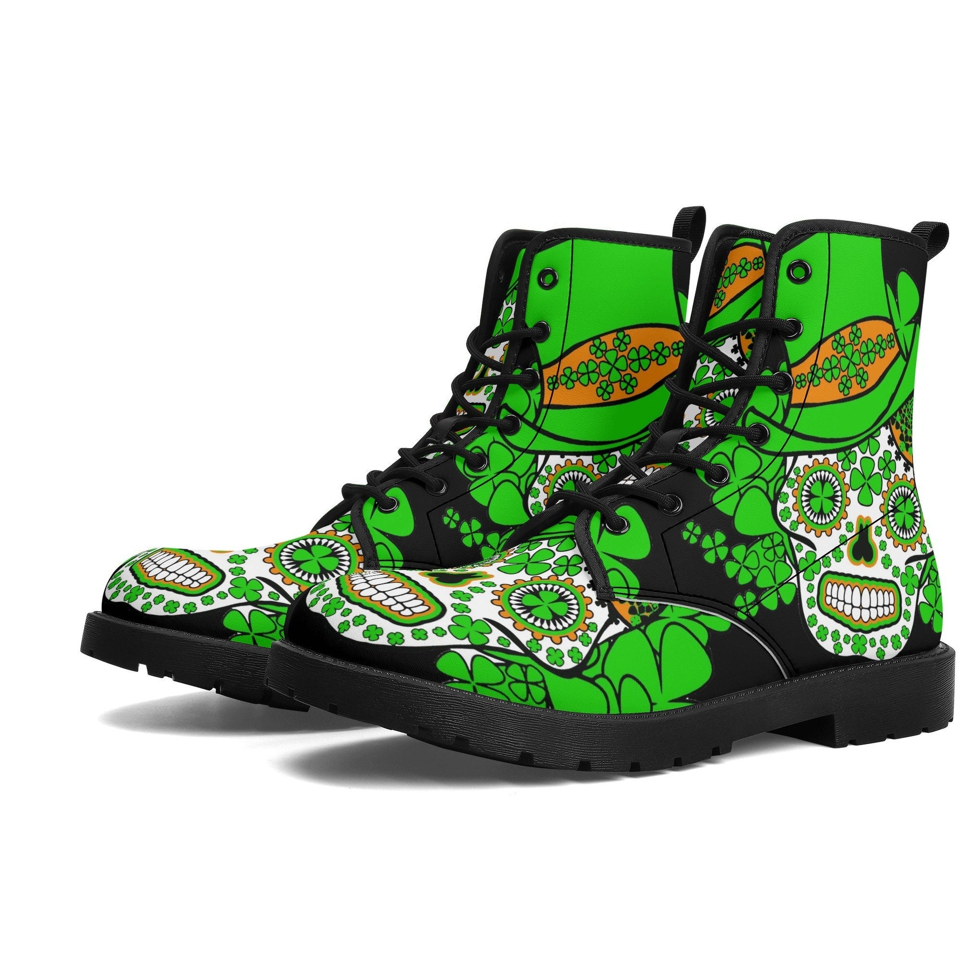 Saint Patrick's Day sugar skull leather boots, Sugar skull boots men women, Dia de los muertos skull boots shoes Calaveras Candy skull boots