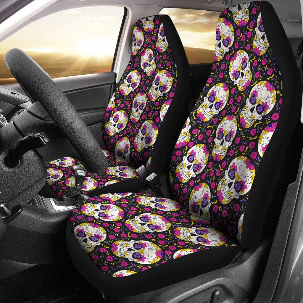 Set of 2 candy sugar skull car seat covers