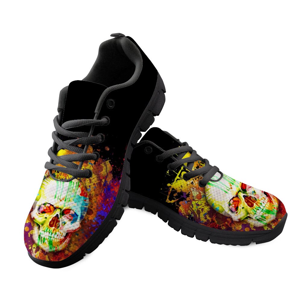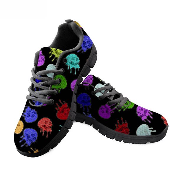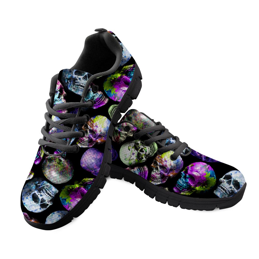 Skull Sneakers Black 3D Butterfly Pattern Casual Women Sneakers Flats Ladies Shoes