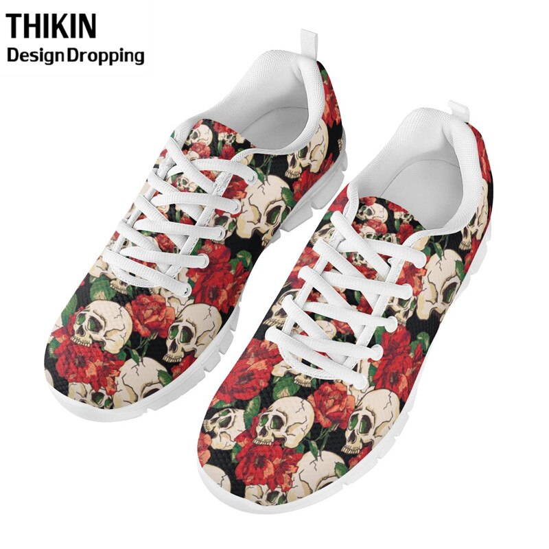 Stylish Skull Rose Floral Printing Women's Causal Shoes Woman