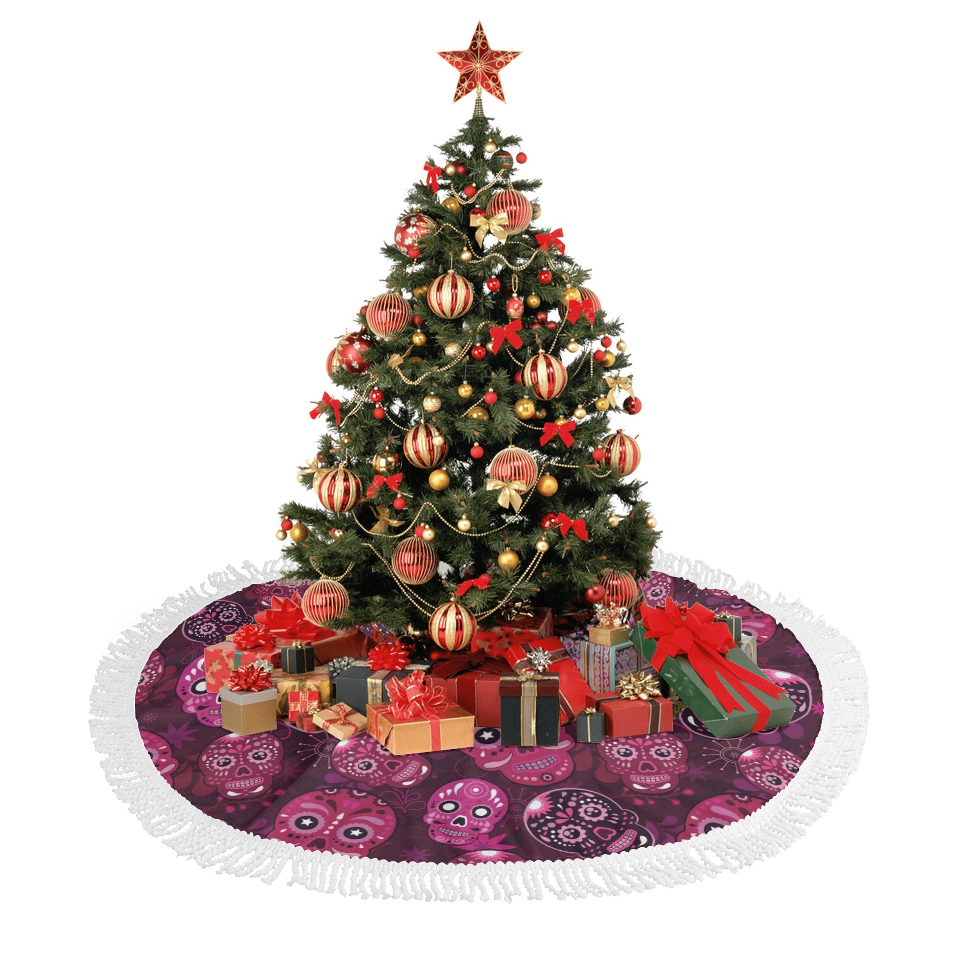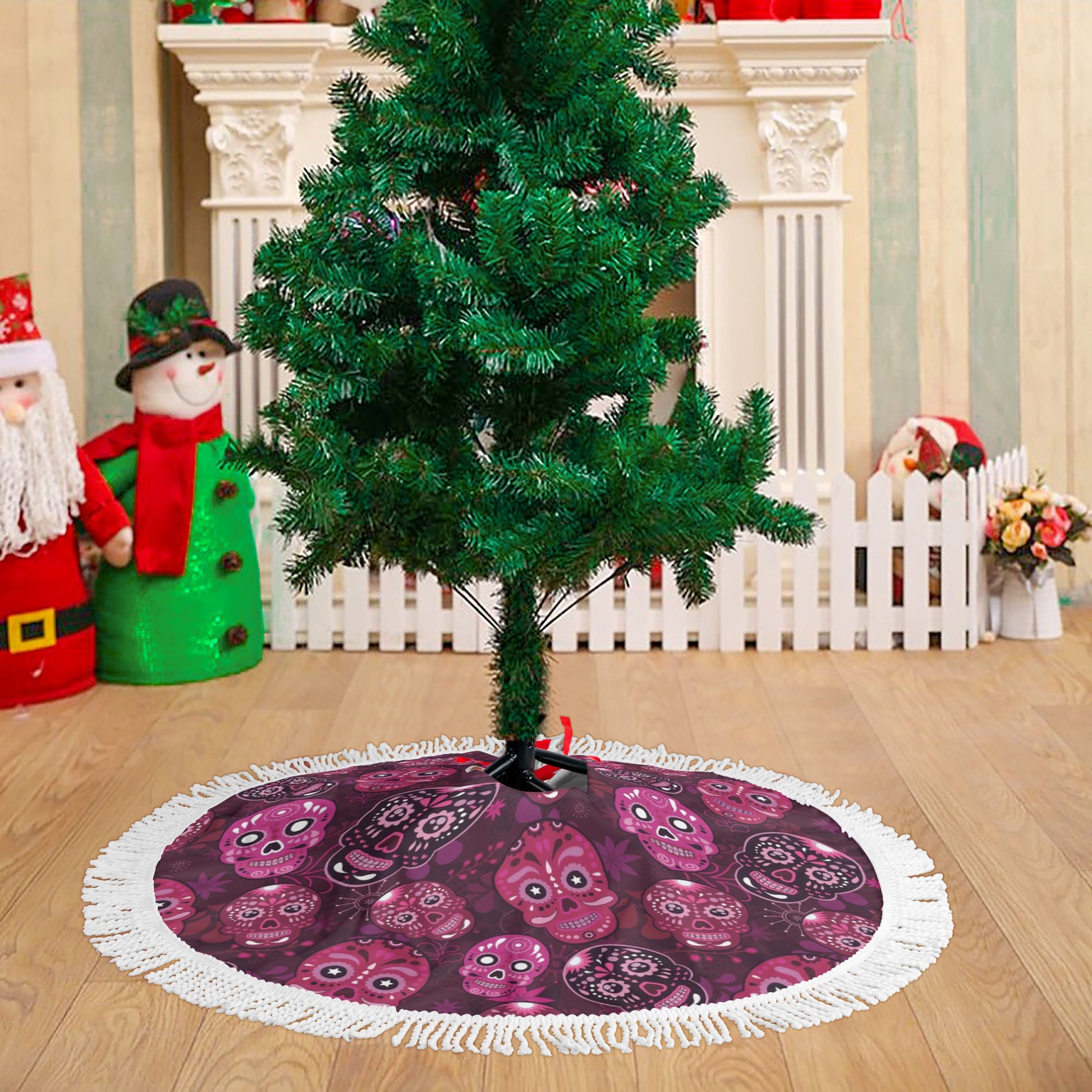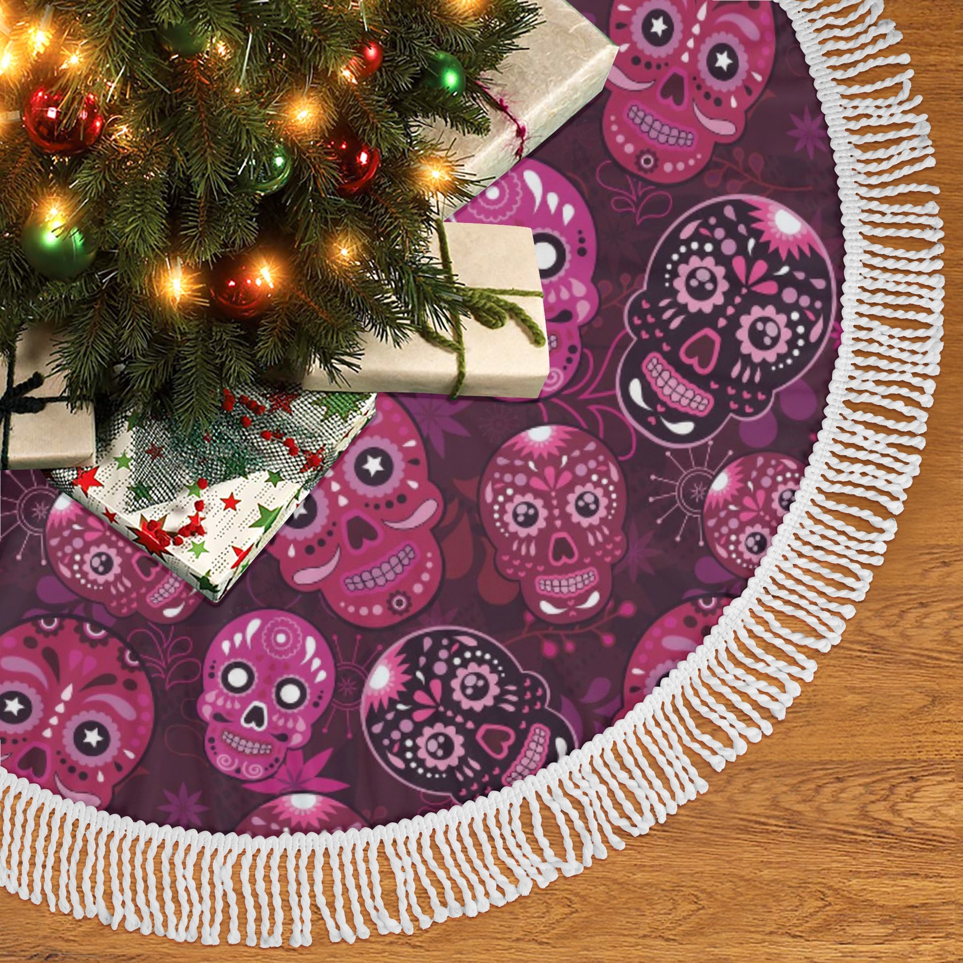 Sugar skull day of the dead Fringed Christmas Tree Skirts